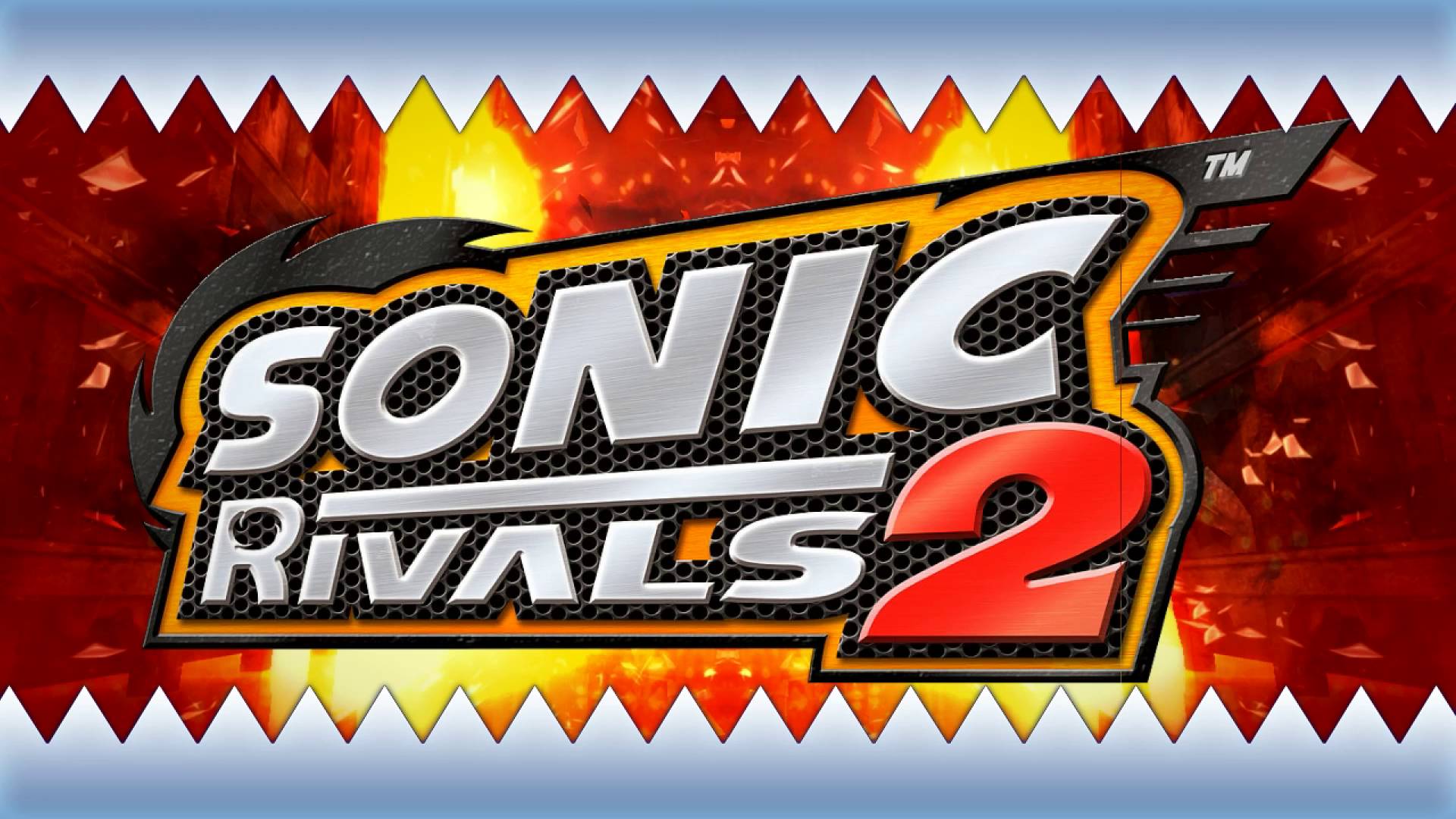 Description: A sonic rival 2 logo with flames in the background and a blue border around it that says sonic rival 2.
