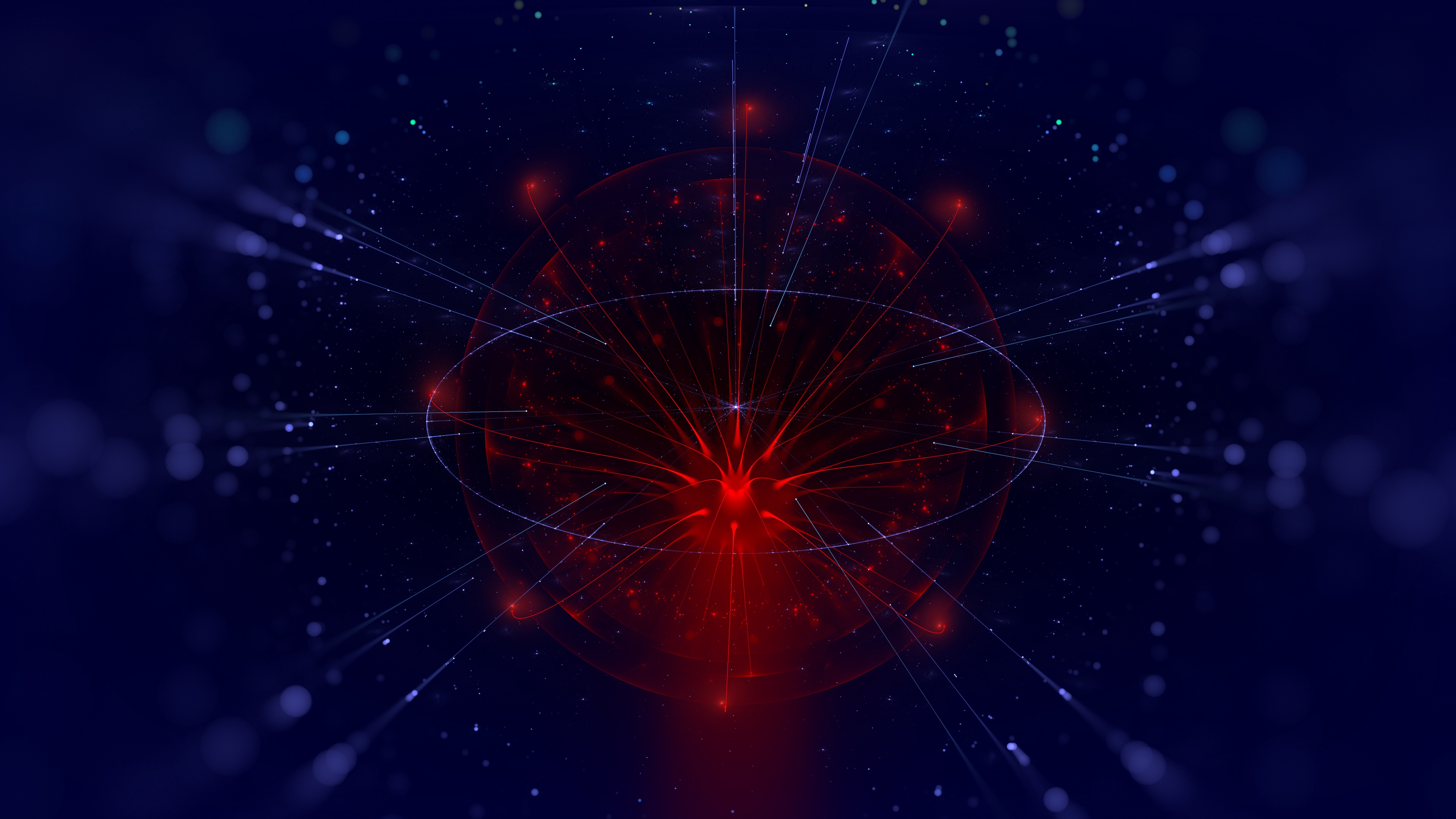 Description: A red and blue background with a lot of lines and dots in the center of the image and a red light at the center.