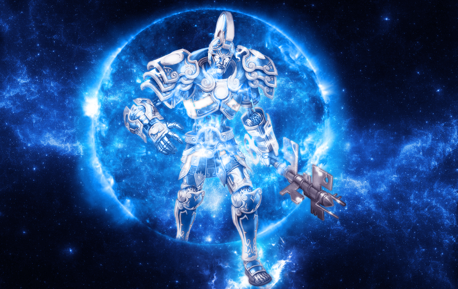 Description: A space - themed robot with a space shuttle in front of it and a blue background with stars and a blue ring.