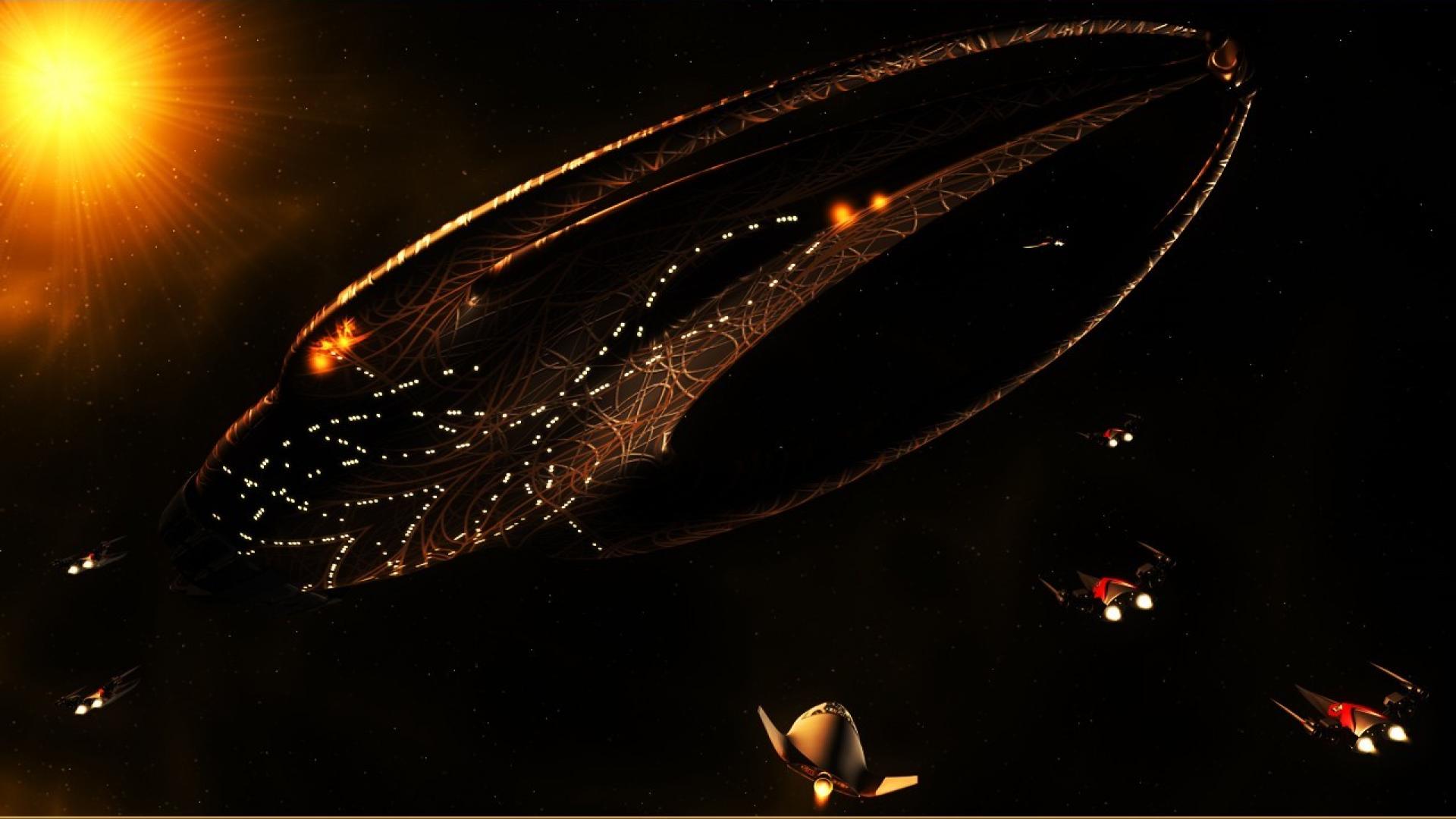 Description: A space station with a lot of lights and a lot of stars in the background and a lot of lights on the ground.