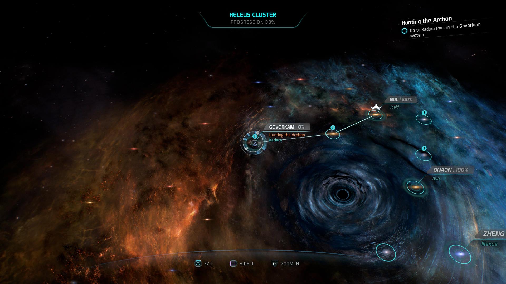 Description: A computer screen showing a space station in the middle of a galaxy with a spiral of stars and a star cluster.