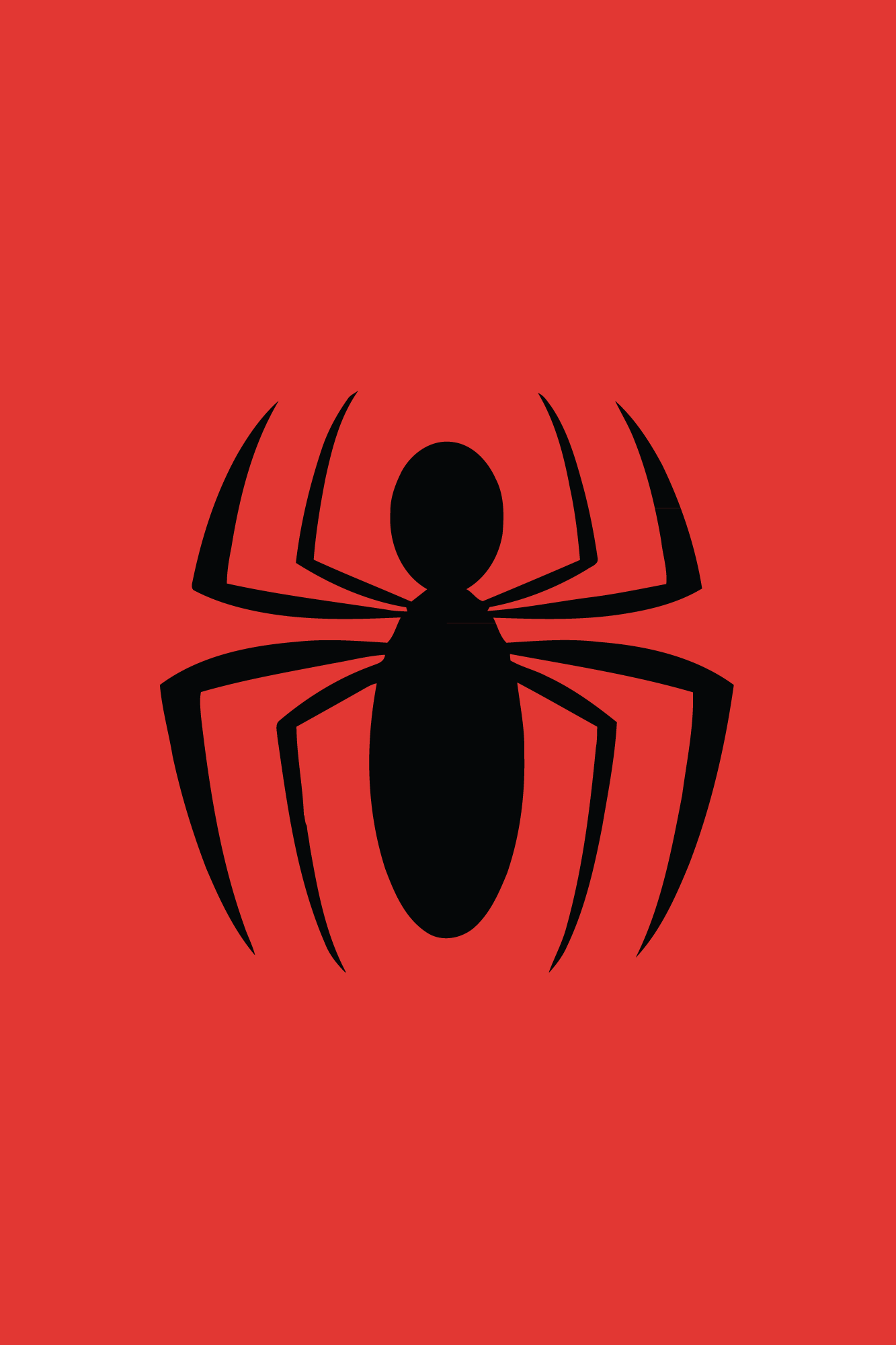Description: A spider logo on a red background with black lines on it's back side and a black spider on the front.