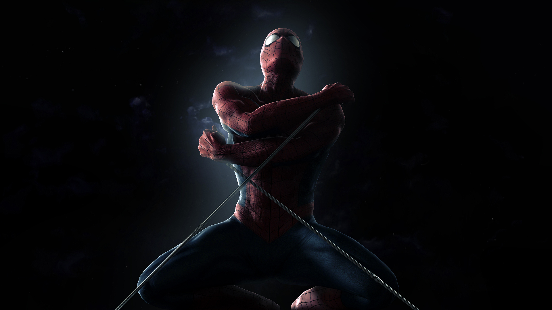 Description: A spider man with a bow and arrow in his hands.
