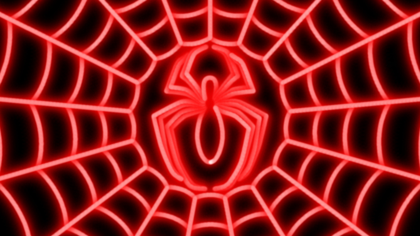 Description: A spider web with a red light in the center of it and a black background with a red spider web.