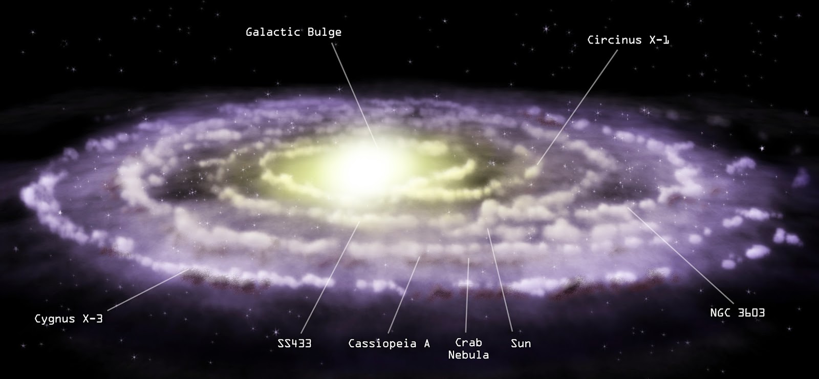 Description: A spiral galaxy with a lot of stars and names on it's side.