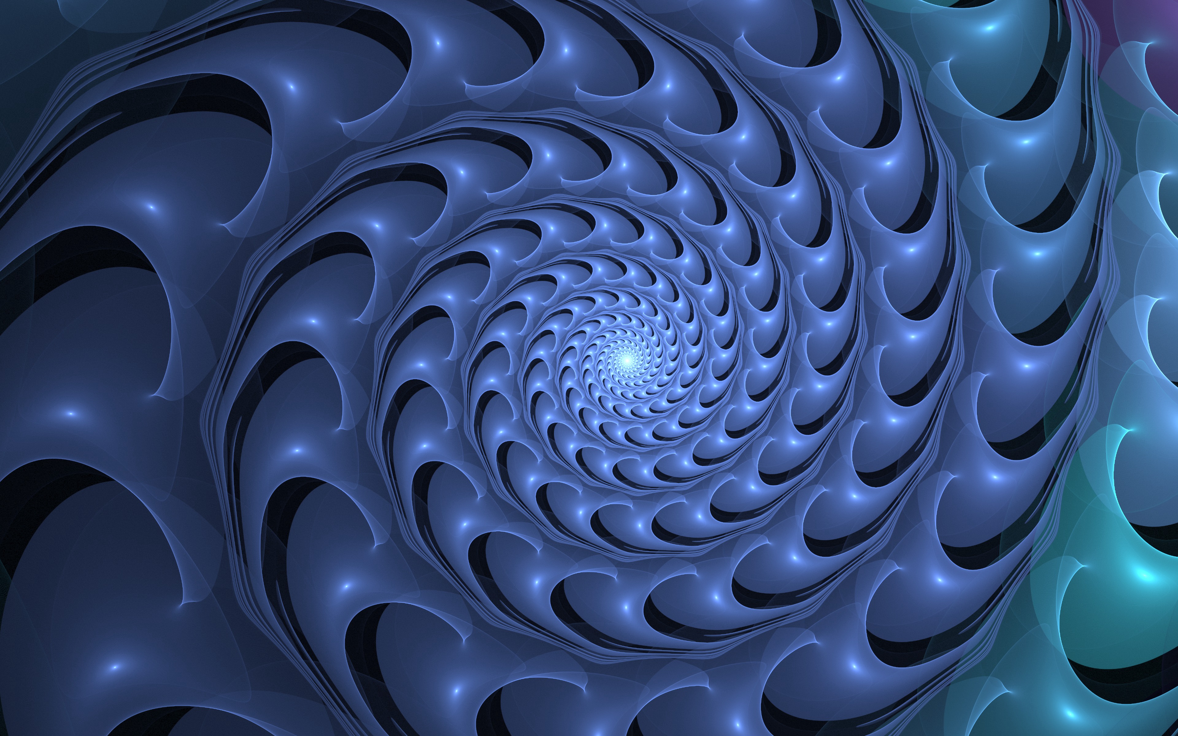 Description: A computer generated image of a spiral design in blue and pink colors with a center surrounded by smaller circles.