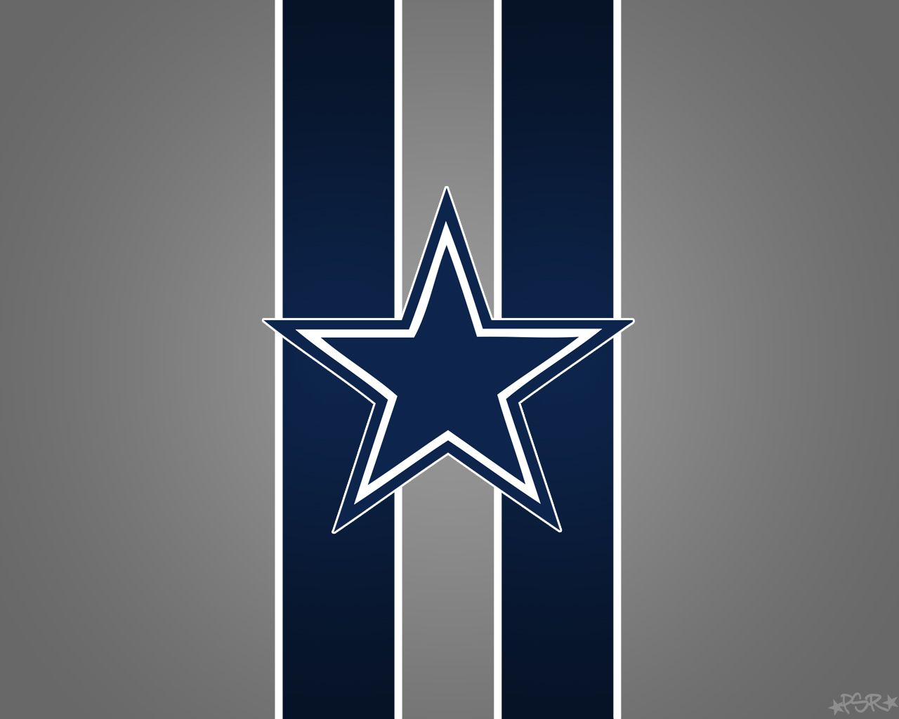 Description: A star is on the side of a building with a gray background and a blue and white stripe with a white star.