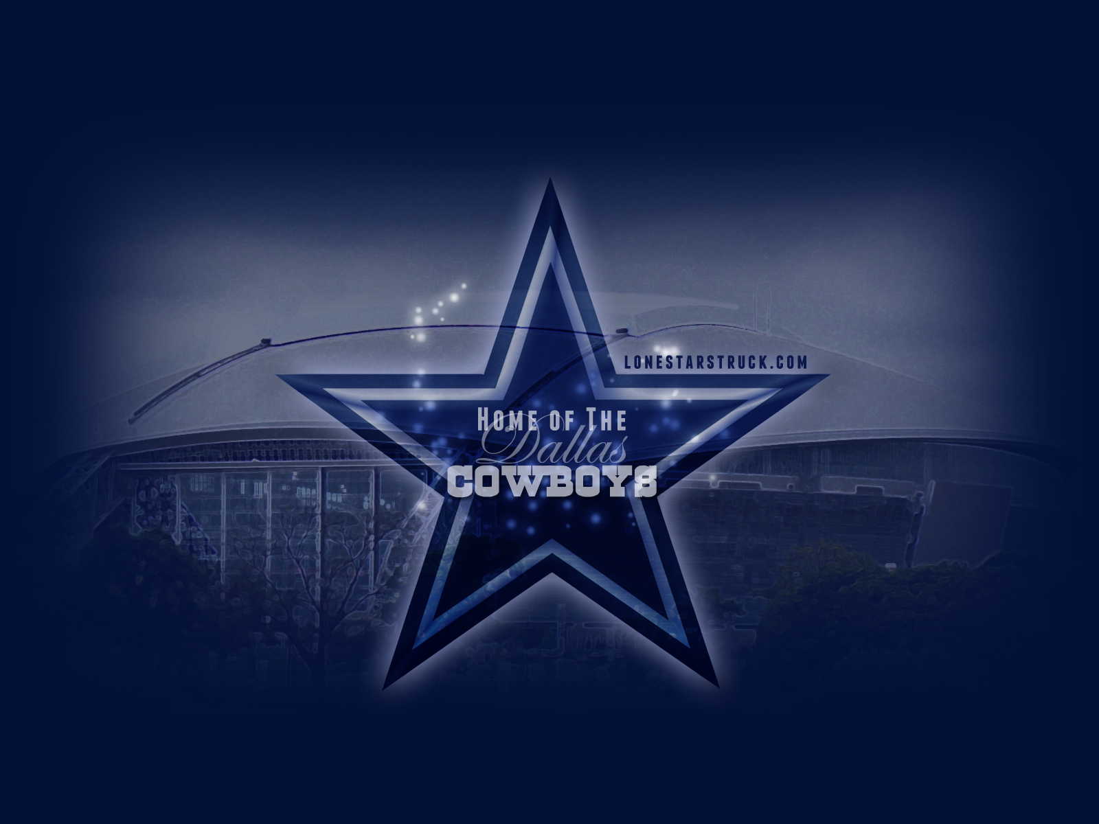 Description: A star with the name of the cowboys on it is shown in front of a stadium building and a stadium.