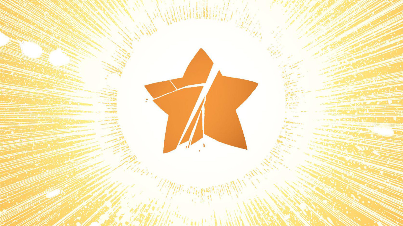 Description: A star with a cross on it in a yellow background with rays of light around it and a star with a crisscross on the center.