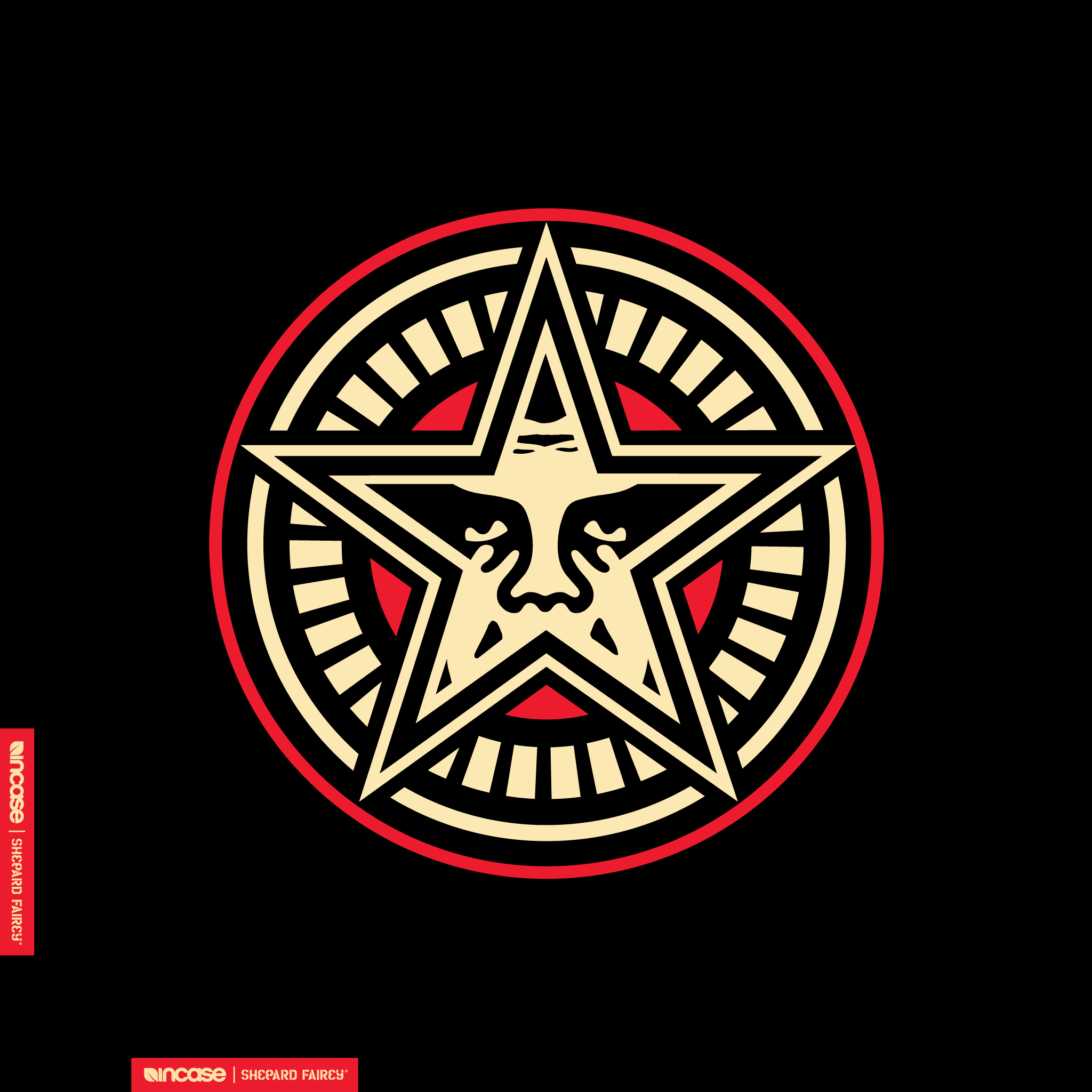 Description: A star with a face inside of it on a black background with a red border around it and a red border around it.