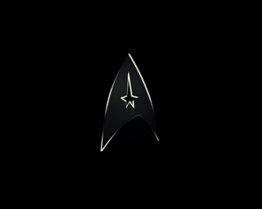 Description: A star trek logo on a black background with a white star trek symbol on it's side and a black background with a white star trek symbol on the bottom.