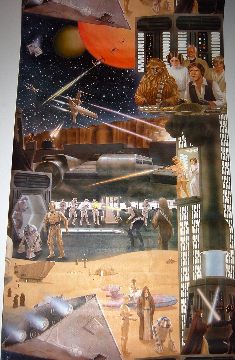 Description: A collage of star wars scenes with a bunch of people in the background and a star wars scene.