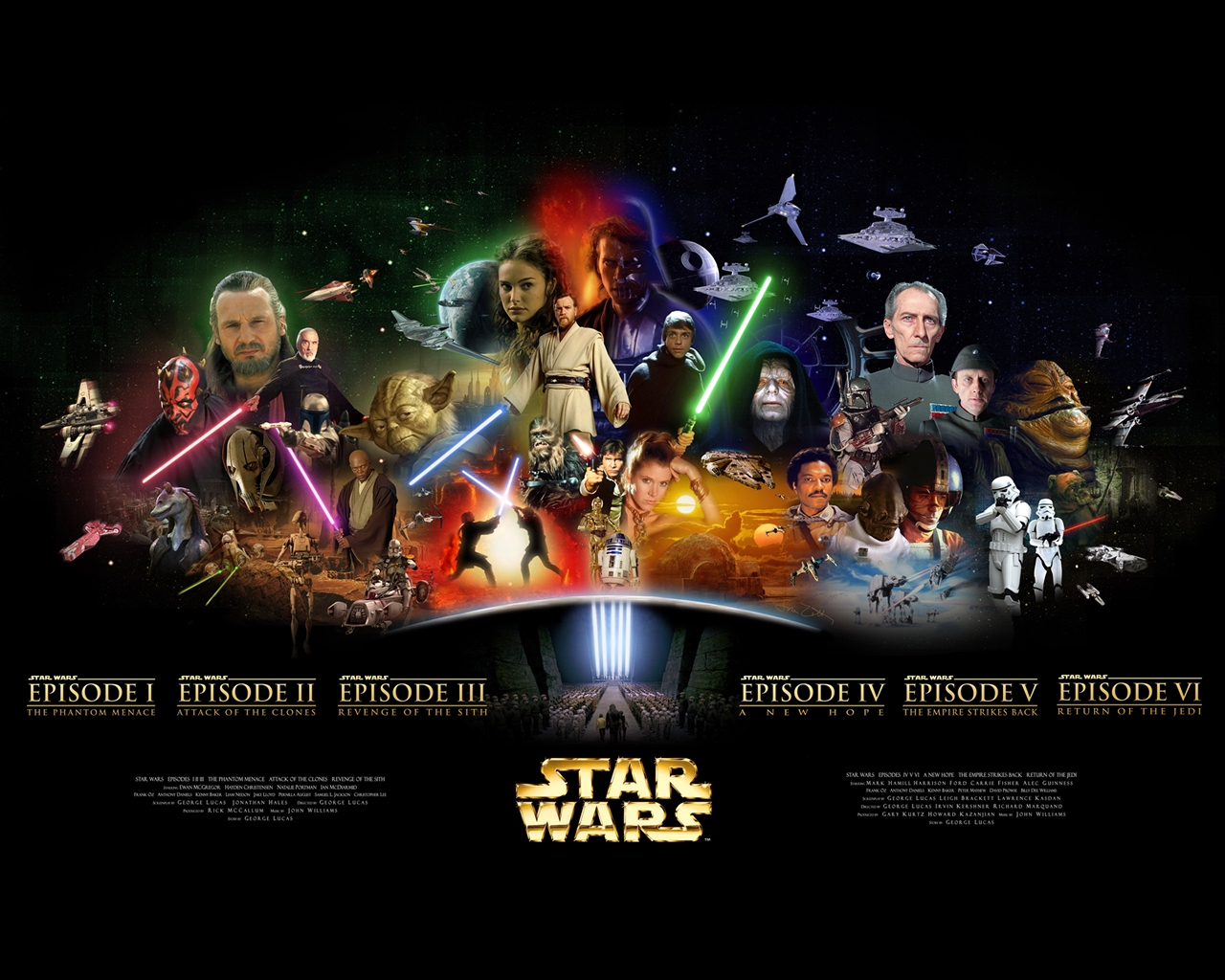 Description: A poster of star wars with all the characters in it and a black background with a white border and a black border.