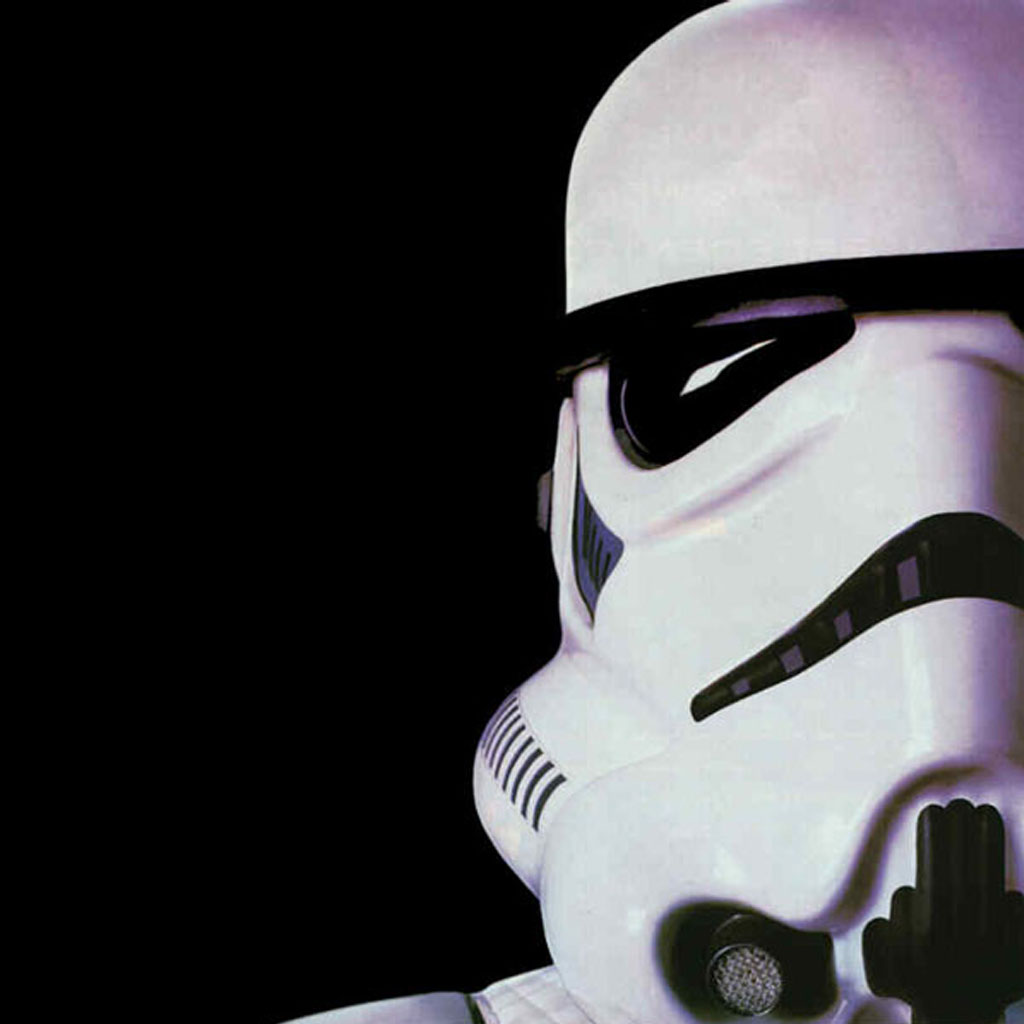 Description: A star wars character with a white helmet and a black background with a black background and a white background with a black background.
