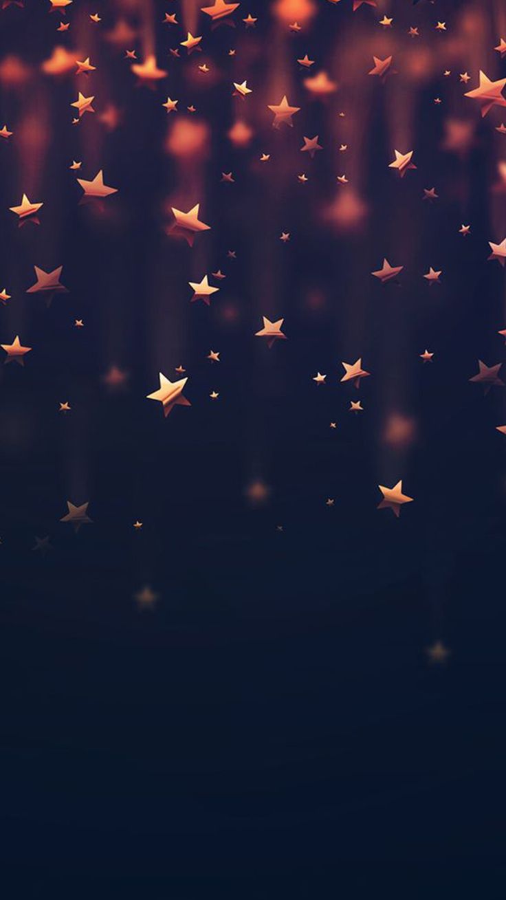 Description: A bunch of stars that are flying in the air together on a dark background with a red light in the middle.