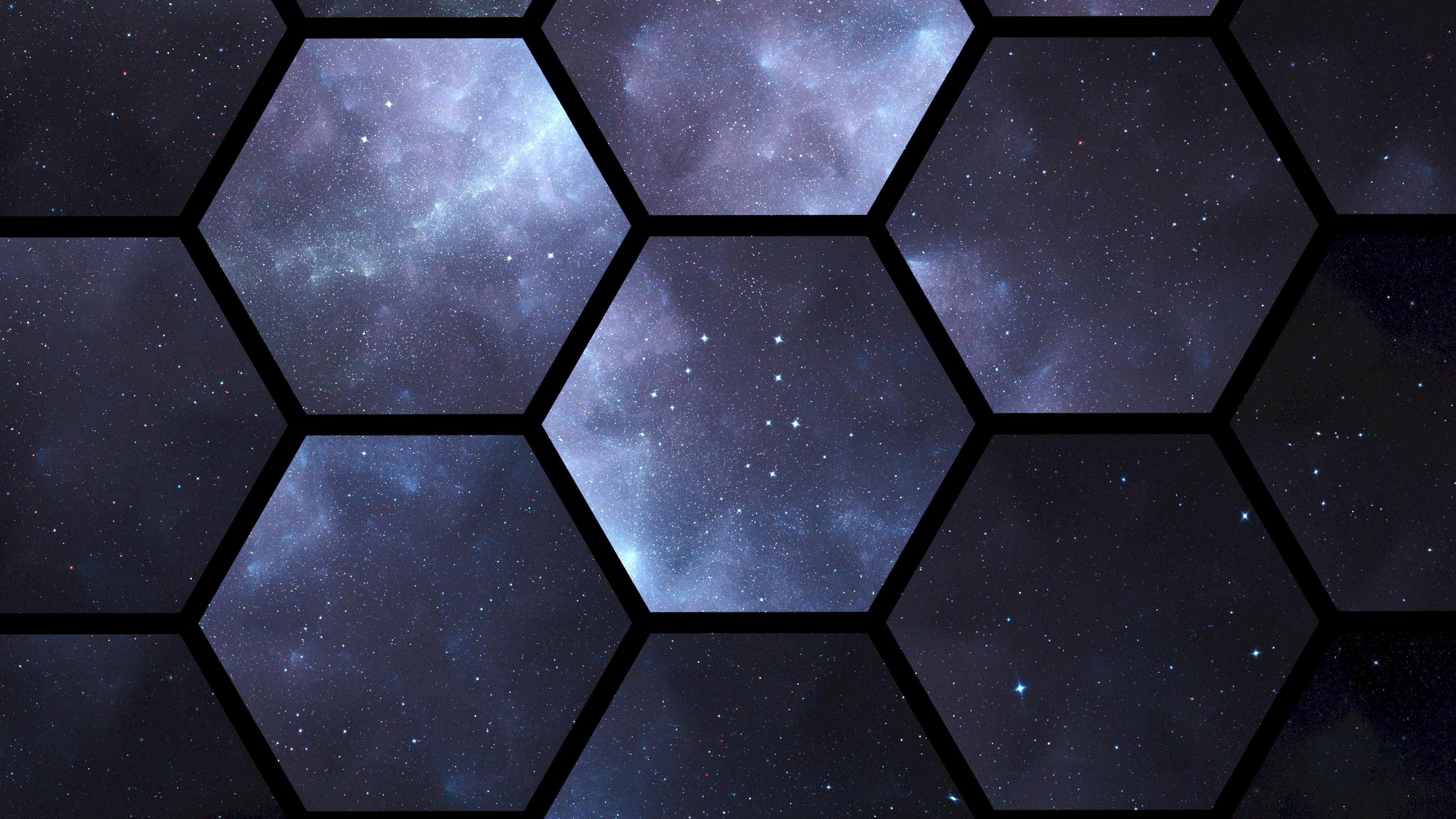 Description: A view of the stars in the sky through a window pane of glass with a hexagonal pattern.