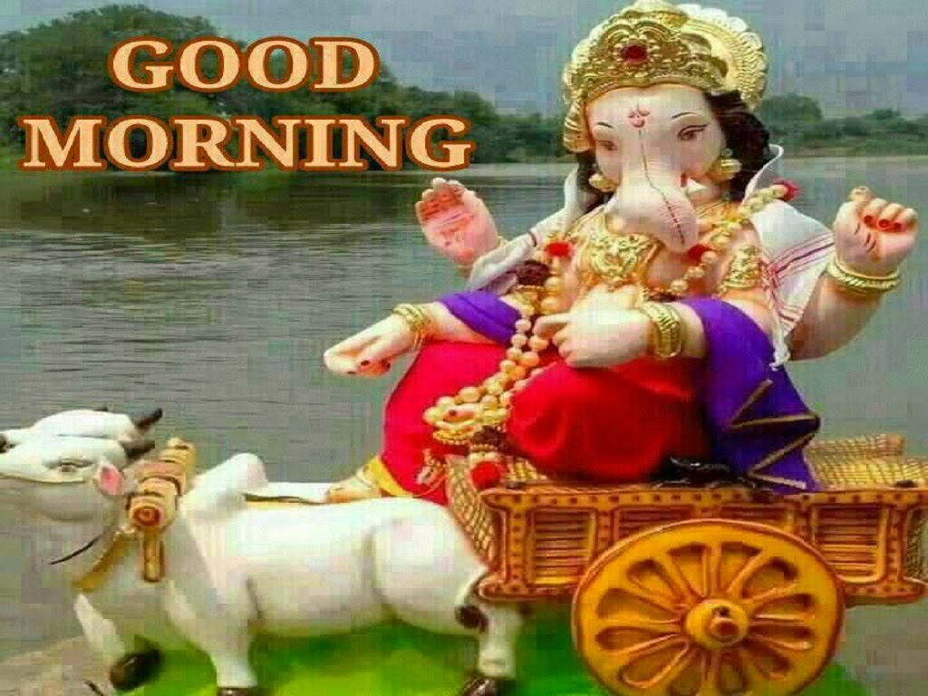 Description: A statue of a god riding on a cart with a cow on the side of the lake with a caption that reads.