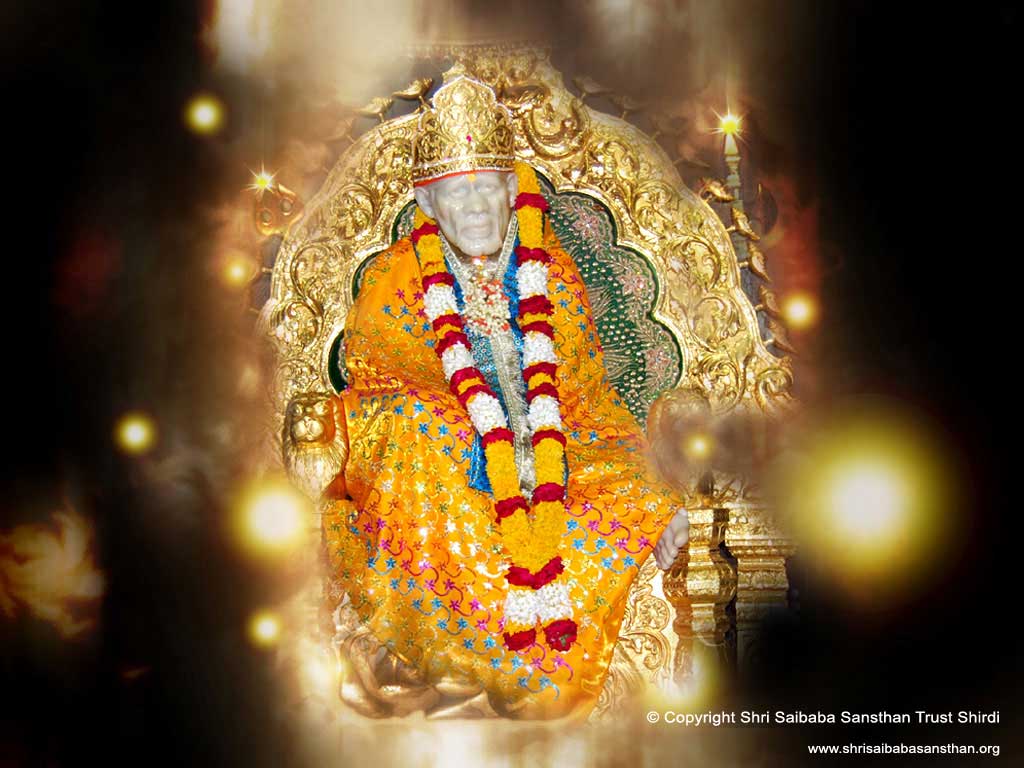 Description: A statue of a person sitting in a chair with lights around it and a black background with a gold border.
