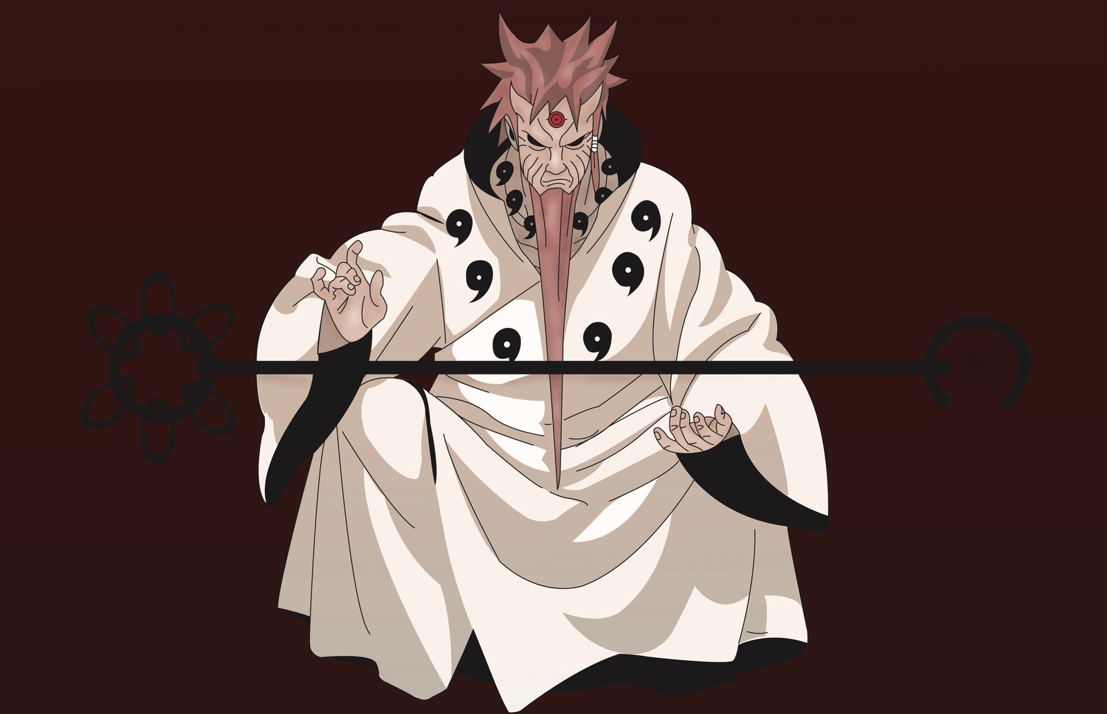 Description: A man with a strange face and a strange nose holding a sword in his hands and a strange nose.