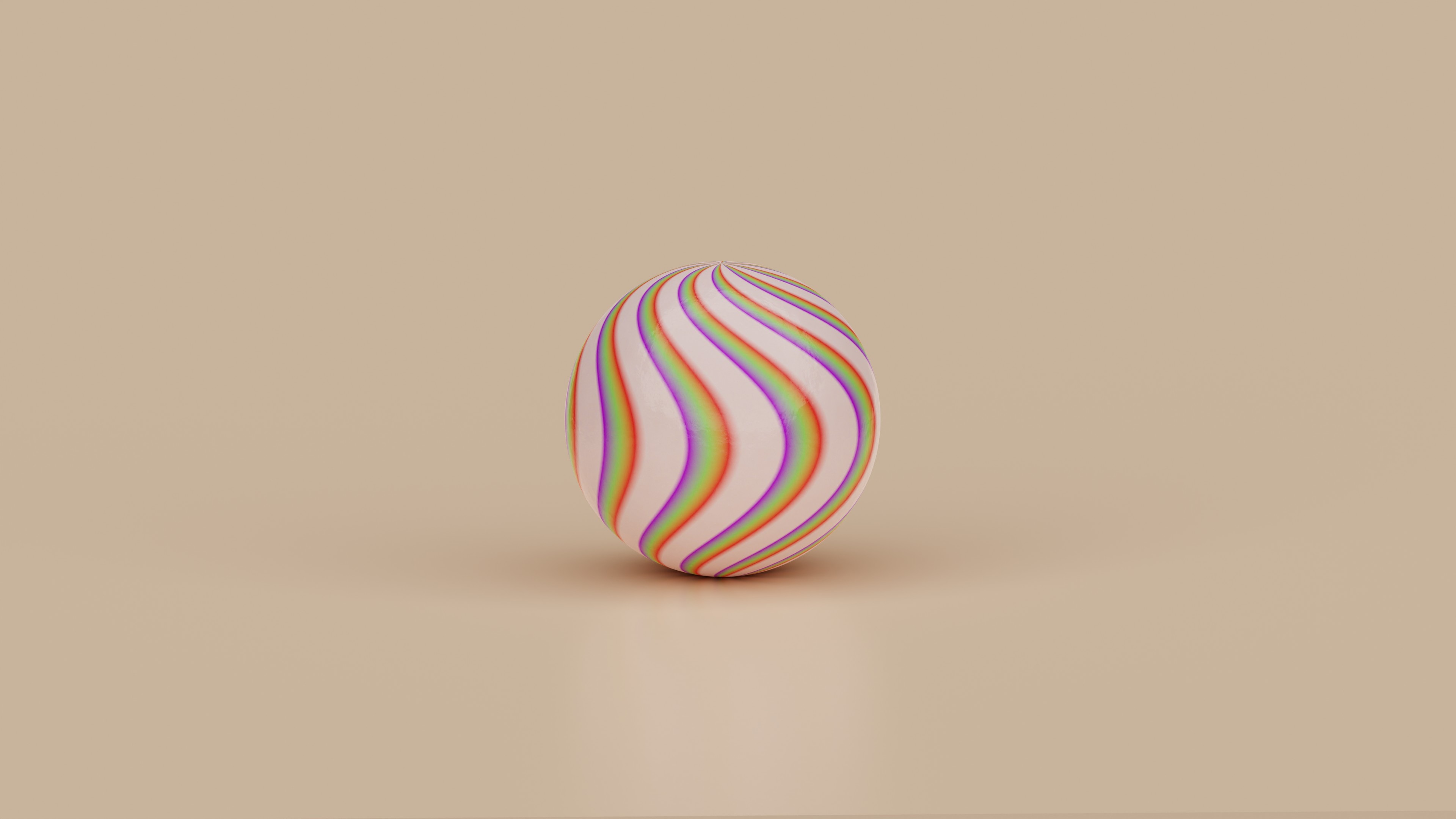 Description: A striped egg sitting on a table with a tan background and a brown background behind it.