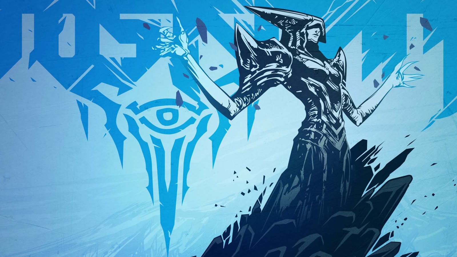 Description: A stylized image of a woman holding a sword and a shield in her hand.