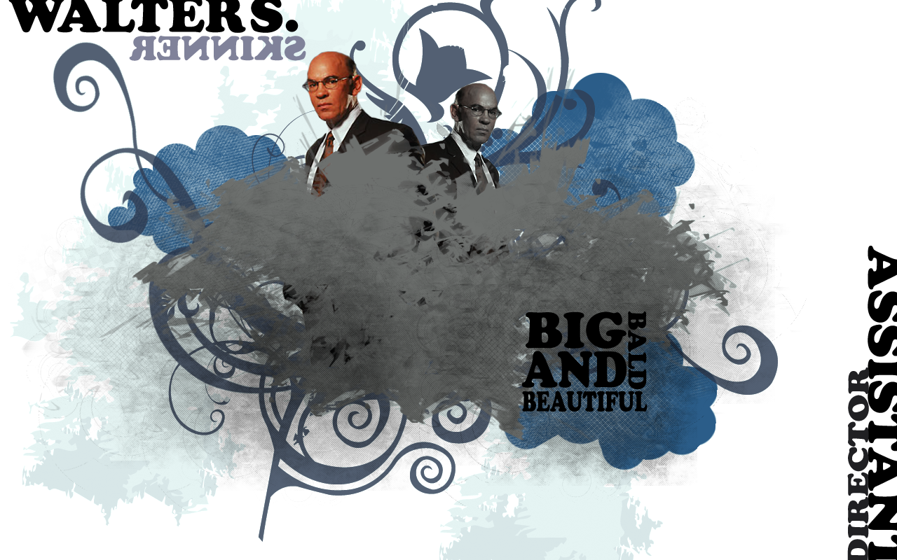 Description: A picture of two men in suits and ties with a background of blue and gray swirls and a black and white design.