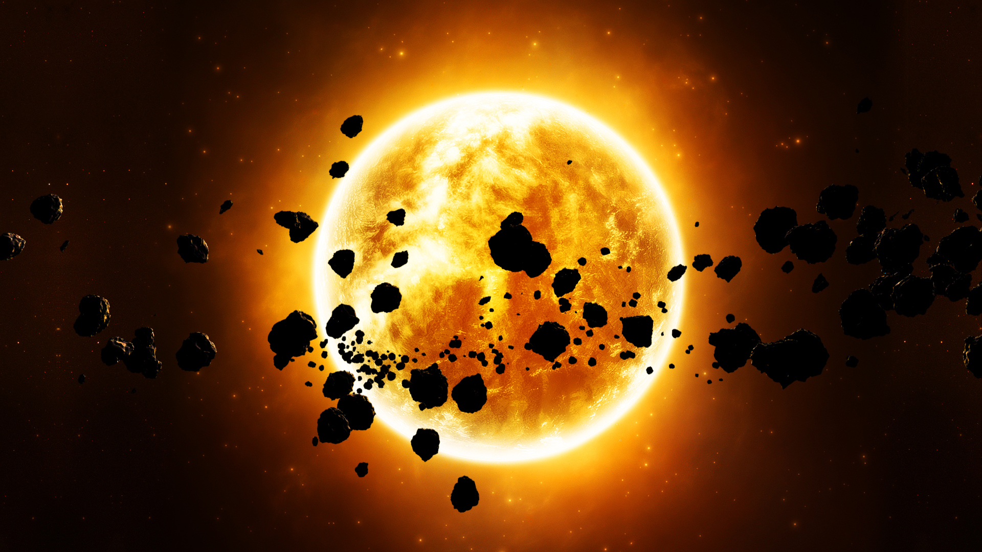Description: A sun with a lot of rocks in it and a black background with a red circle around it and a black background with a yellow circle.