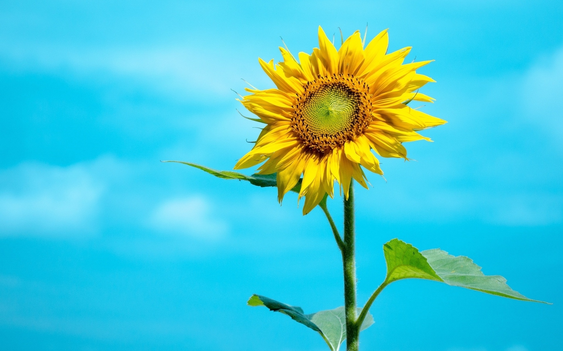 Description: A sunflower with a blue sky in the background and clouds in the background.