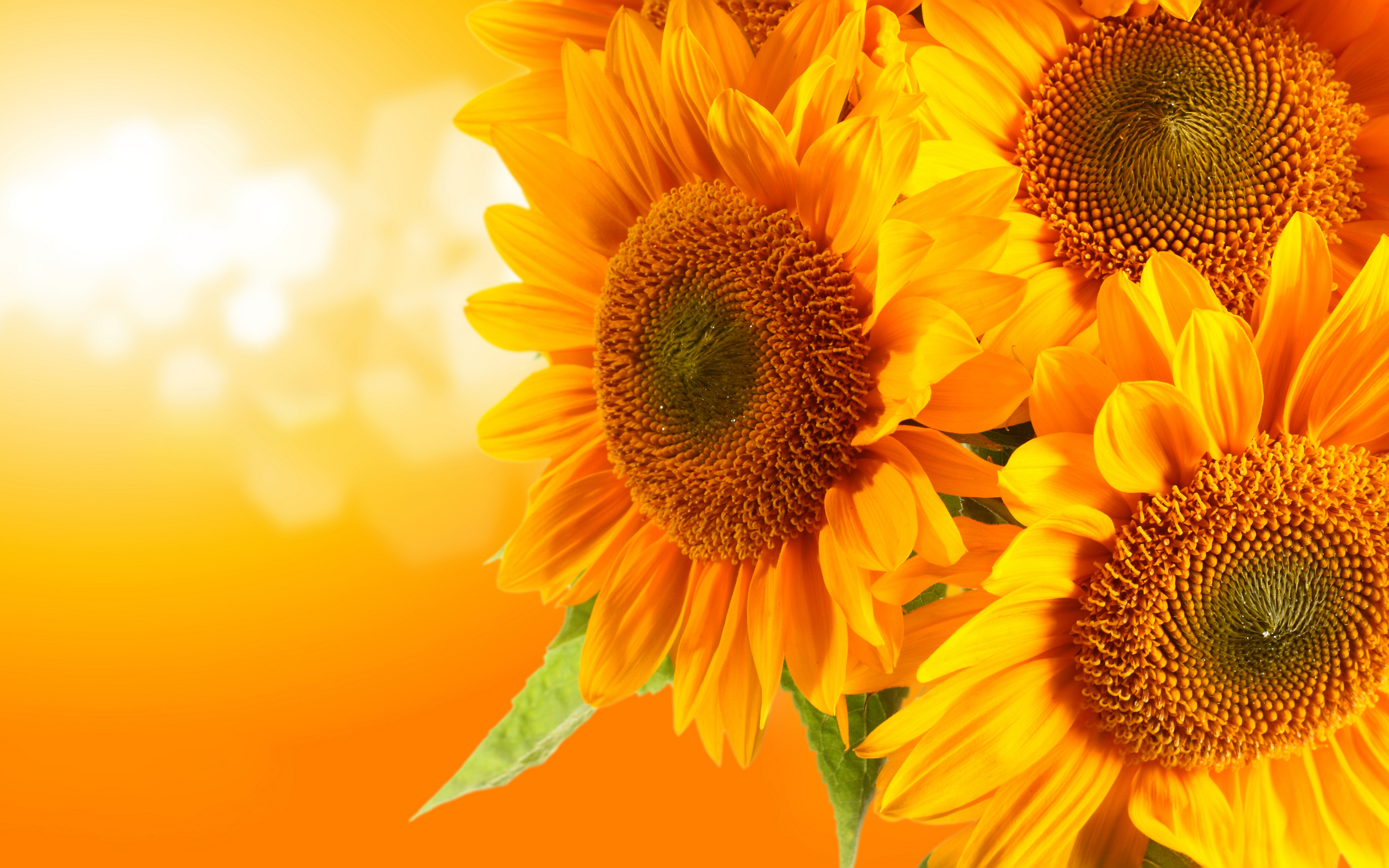 Description: A vase filled with yellow sunflowers on top of a table next to a wall of light and a blurry background.