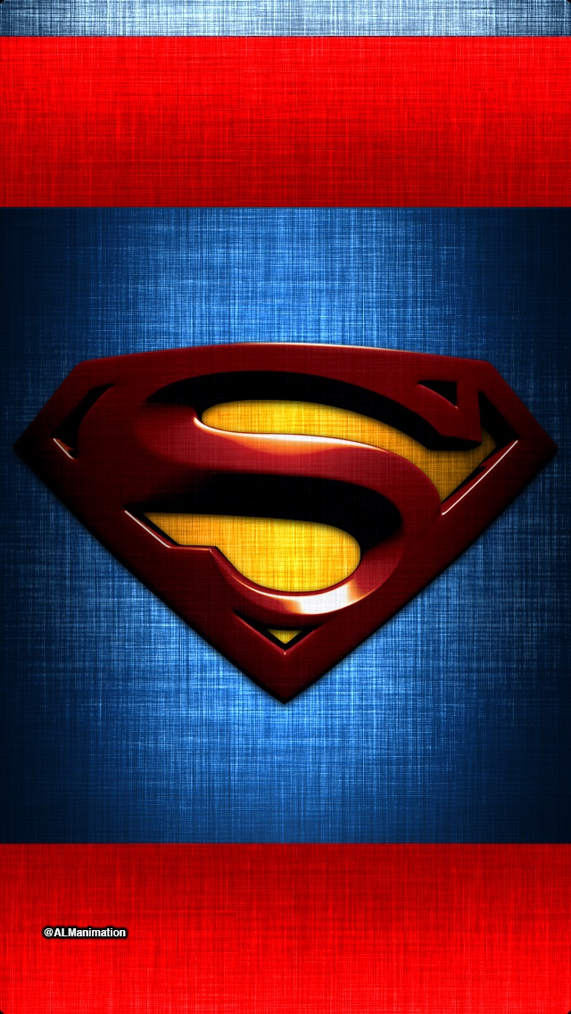 Description: A superman logo on a red and blue background with a red stripe in the center of the image and a blue stripe in the middle of the image.
