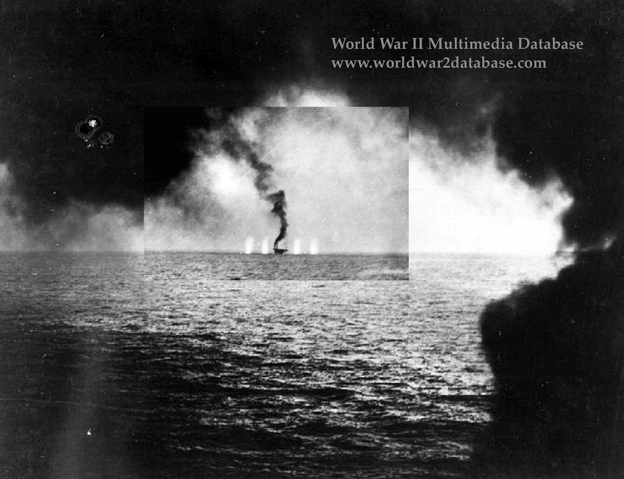 Description: A person on a surfboard in the water with smoke coming out of the water behind them and a black and white photo of a person on a surfboard.