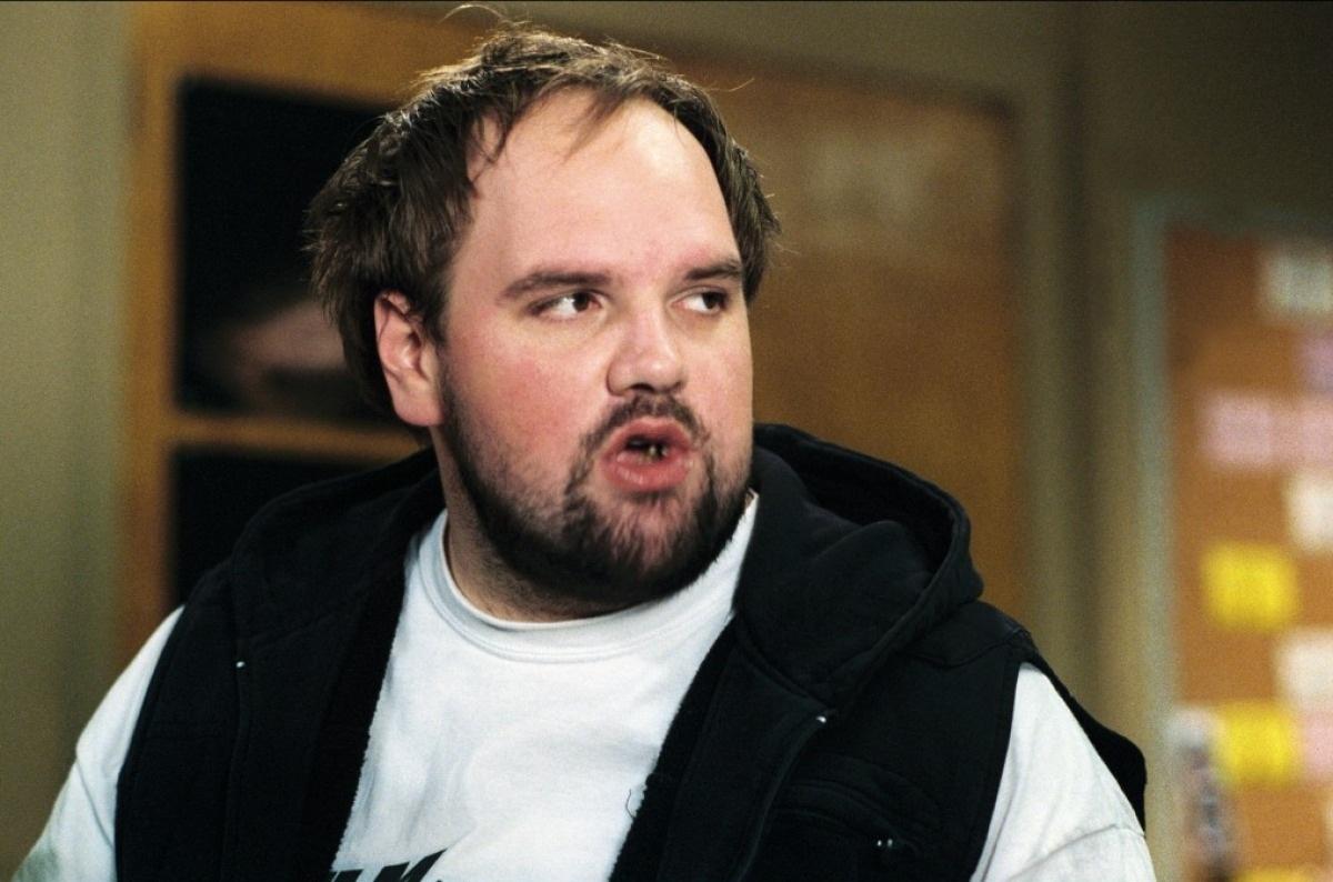 Description: A man with a surprised look on his face and a white shirt on his shirt is holding a cell phone.