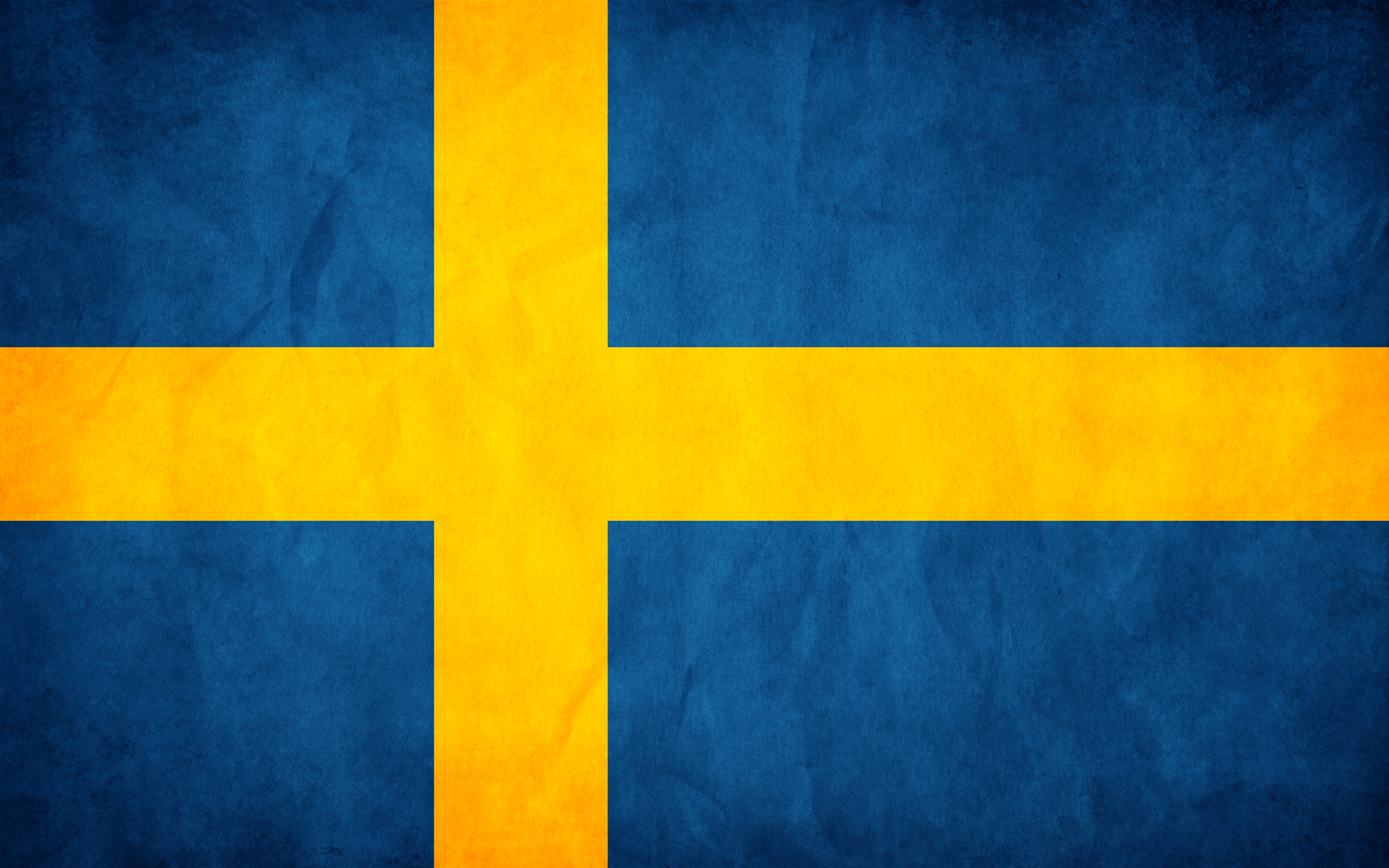 Description: A flag of the country of sweden with a yellow cross on it's center and blue background with a yellow stripe.