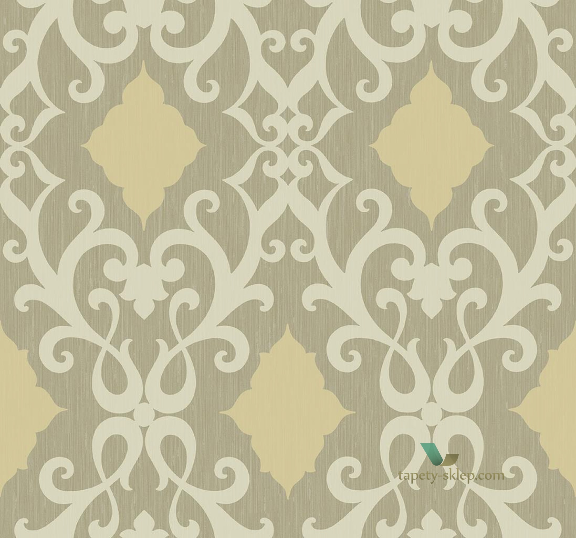 Description: A wallpaper with a pattern of swirls and leaves on it.