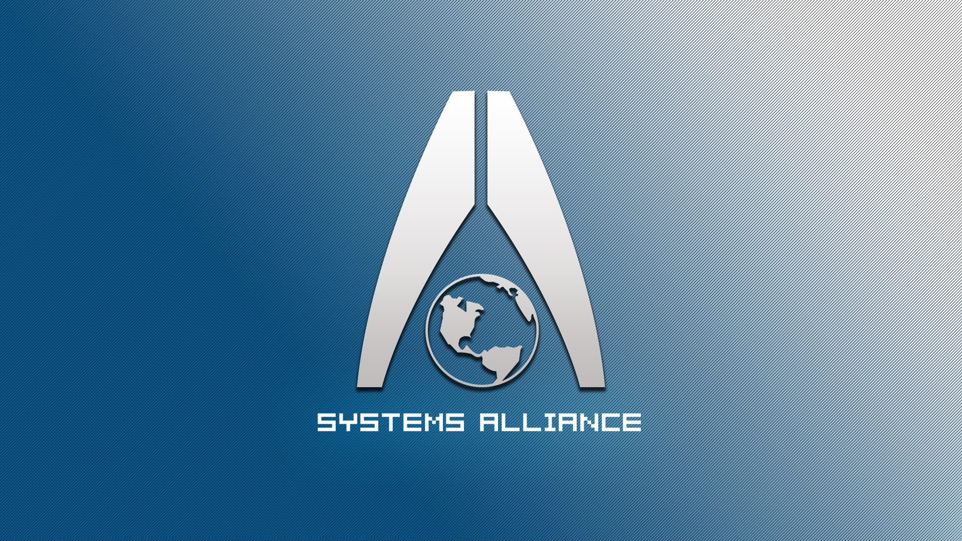 Description: A logo for systems alliance with a globe on it's side and a pair of scissors in the middle.