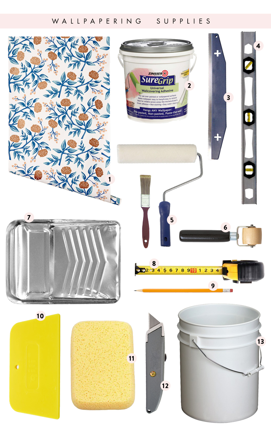 Description: A bunch of items that are on a table with a ruler and a paintbrush and a bucket of paint.