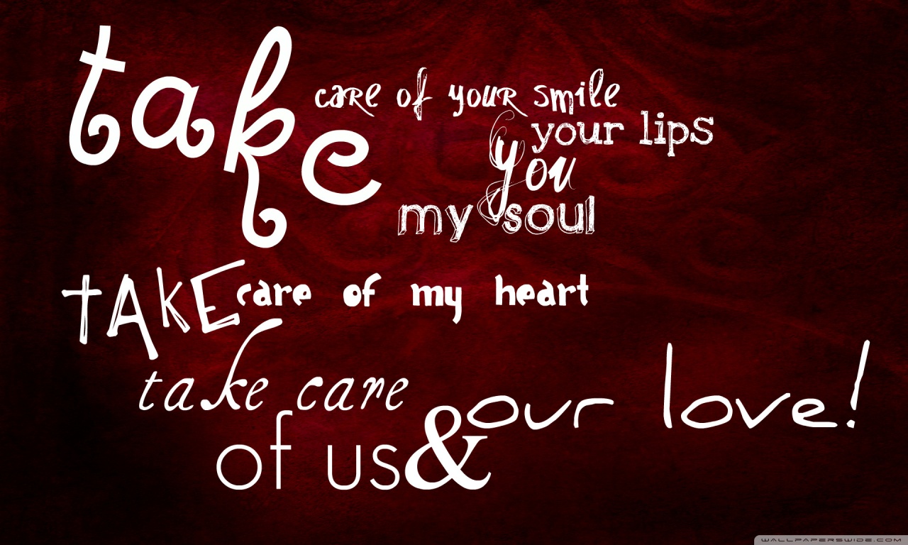 Description: A red background with a white writing on it that says take care of your smile.