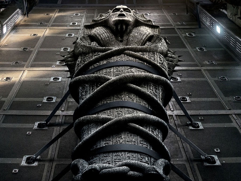Description: A very tall building with a very long sculpture on top of it's side and a light on the side of it.