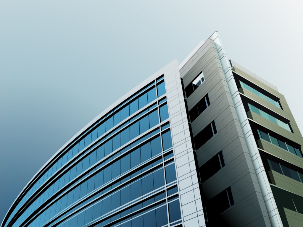 Description: A tall building with a sky background and a blue sky in the background with a few clouds in the sky.