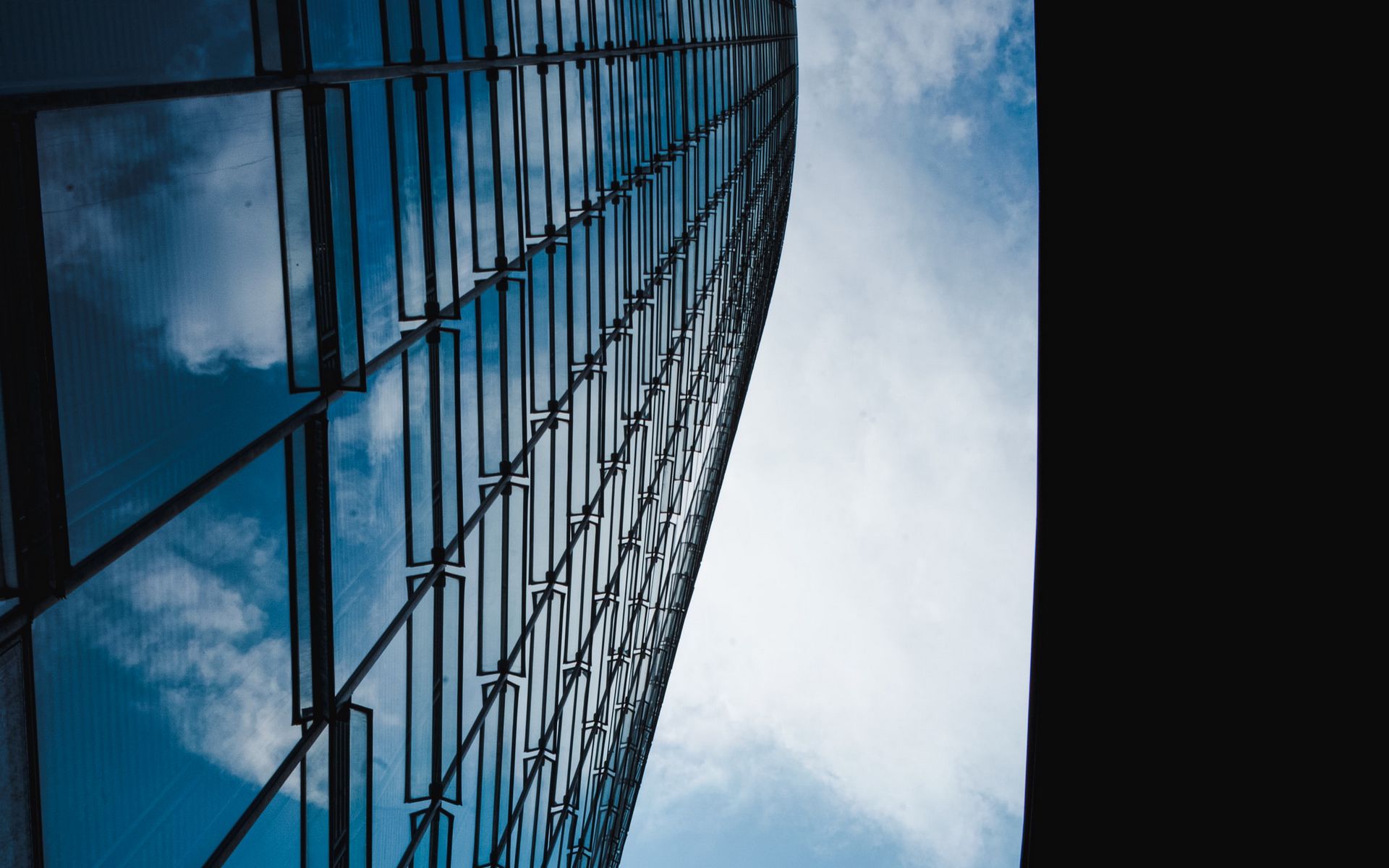 Description: A tall building with a sky background and clouds in the background.