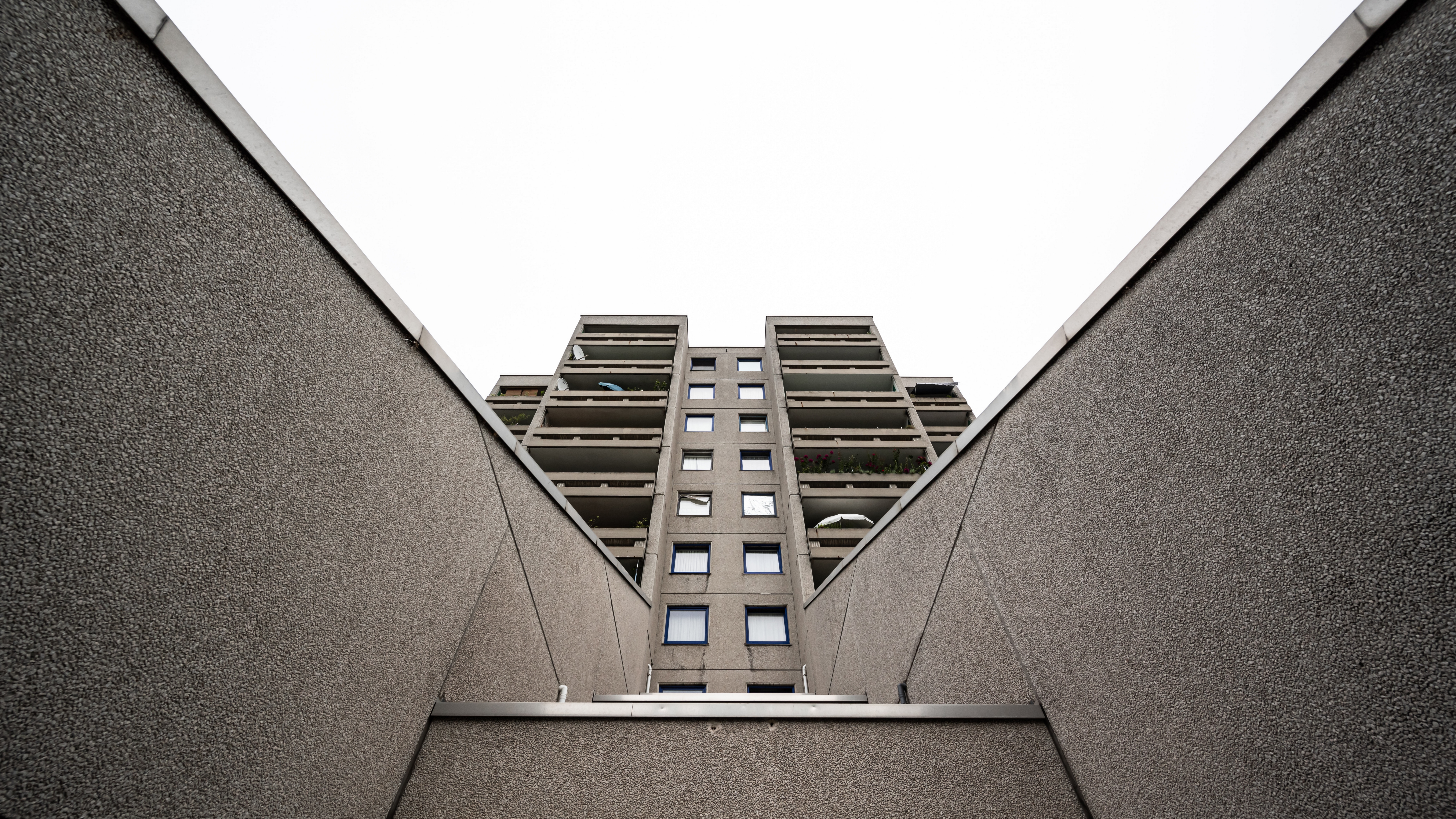 Description: A tall building with a sky background and a sky line above it that is very narrow and has a few windows.