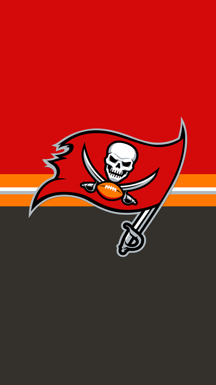 Description: A tampa football team logo on a red background with a black and white stripe and a skull on the side.