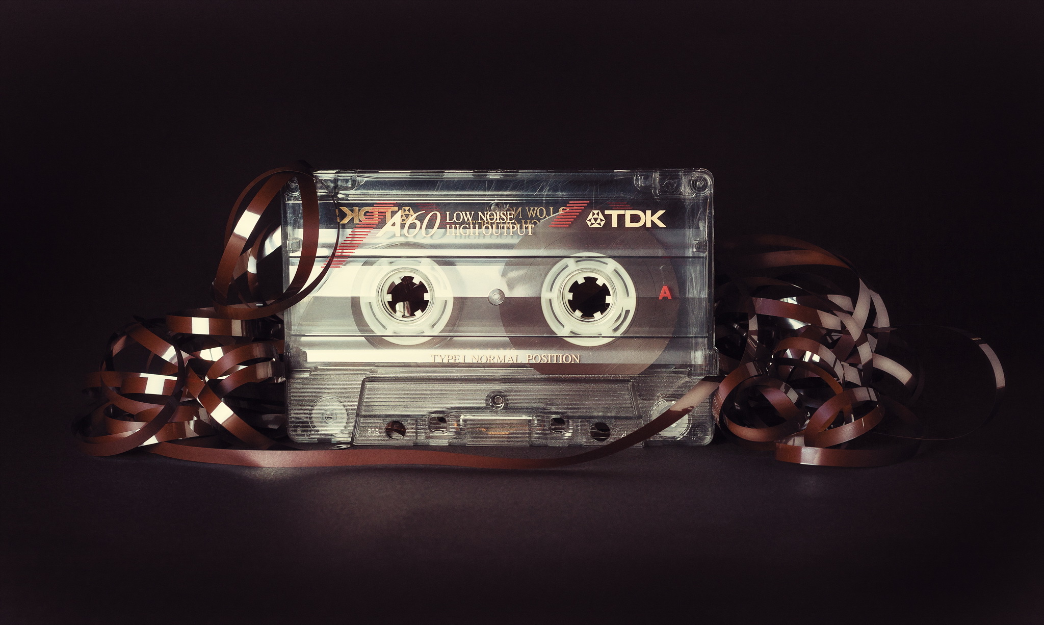 Description: A tape cassette with a tape around it on a table with a ribbon around it and a tape around it.