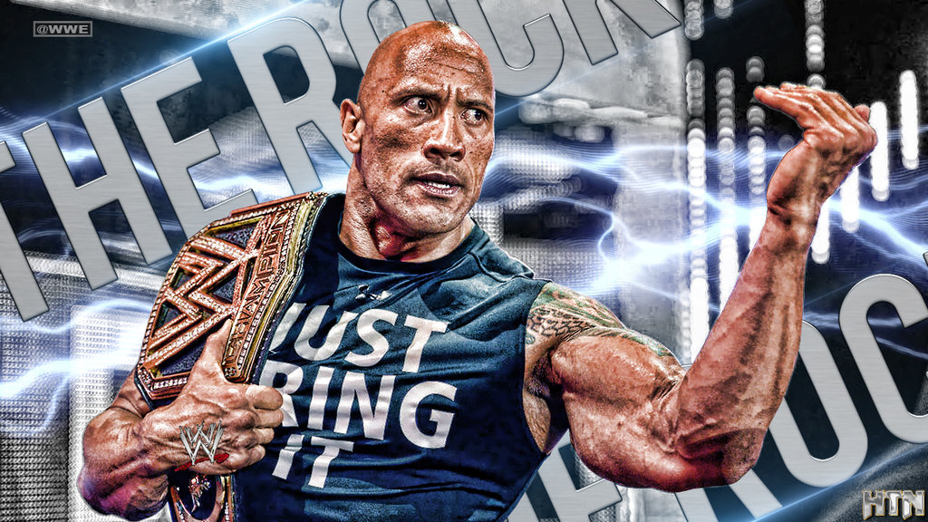 Description: A man with a wrestling belt in his hand and a lightning background behind him with words that read.