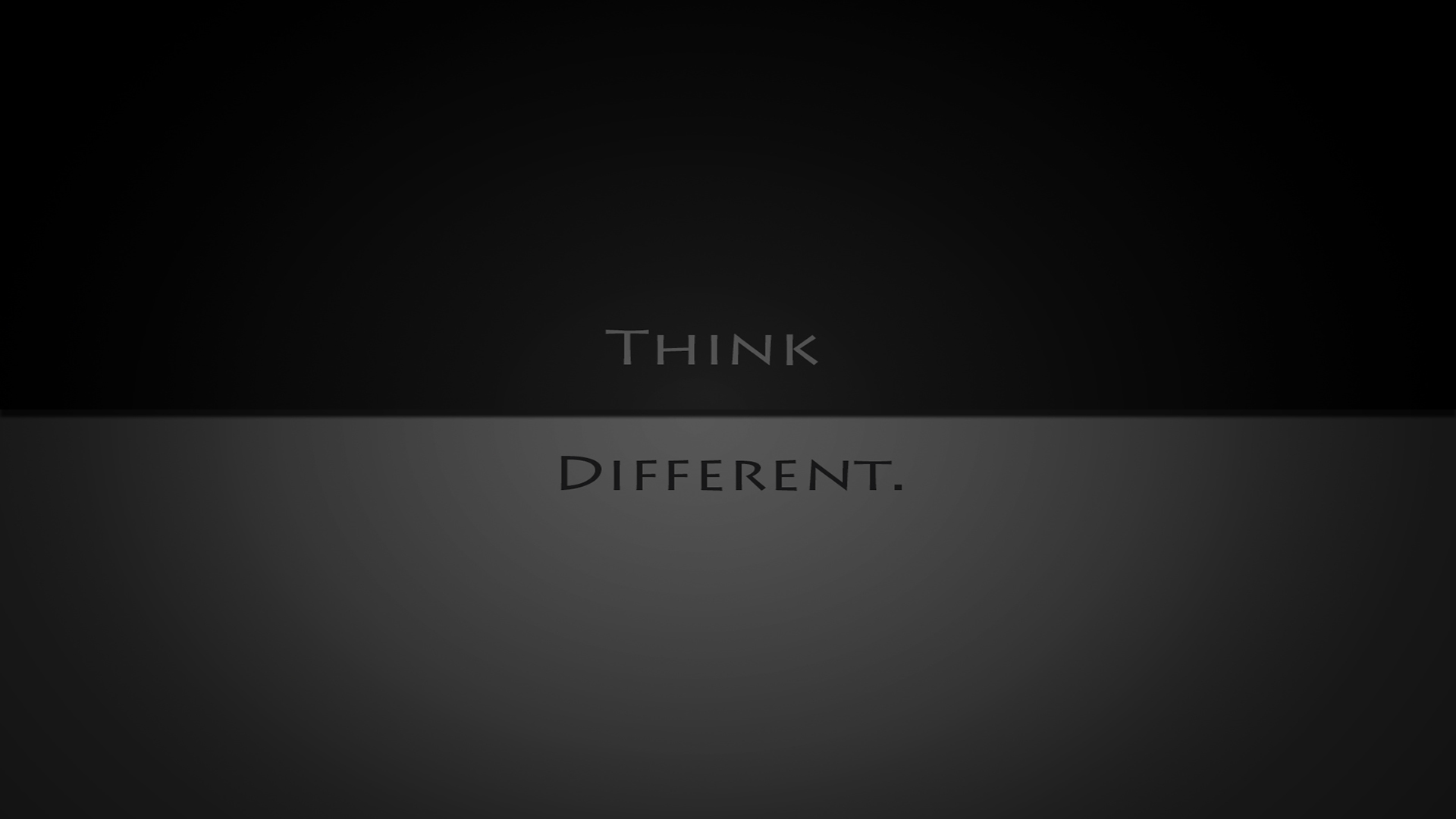 Description: A black and white photo with the words think different on it and a black background with a white line.