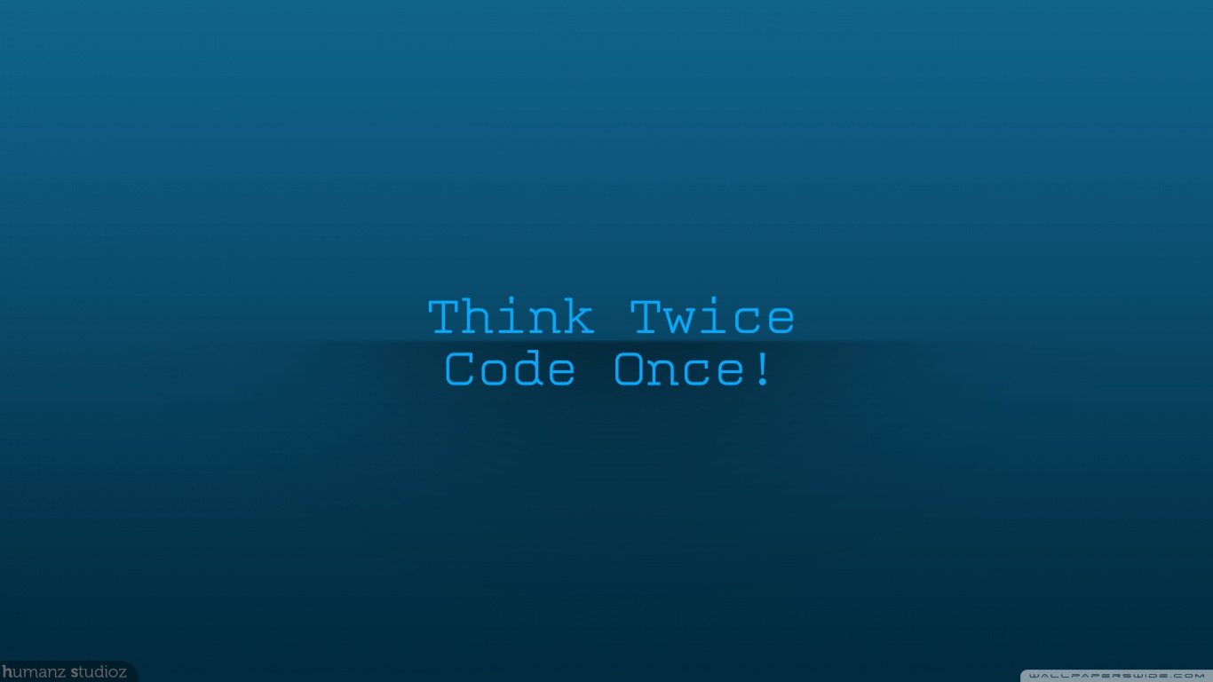 Description: A blue background with the words think twice code once on it and a blue background with the words think twice code once.