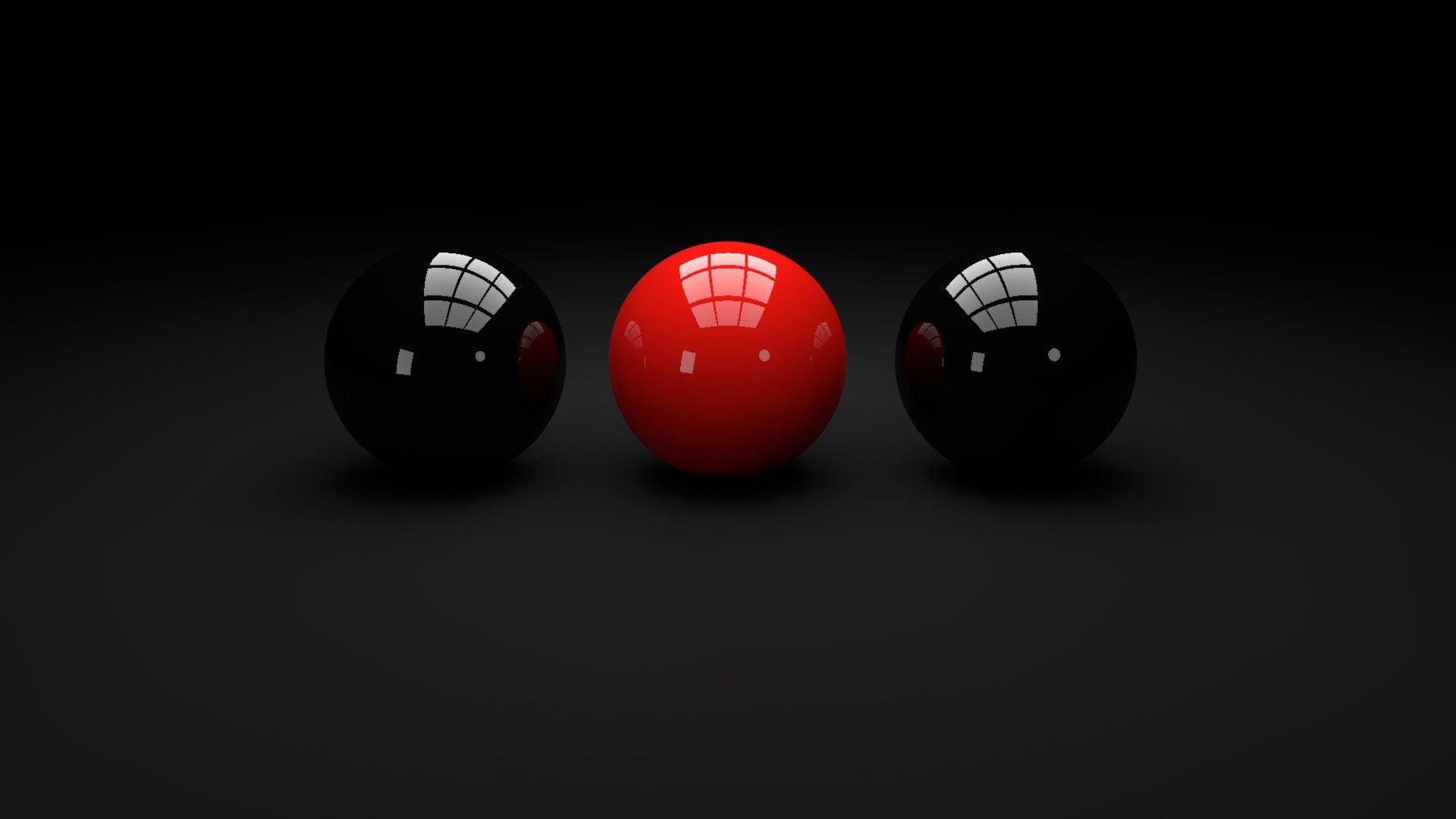 Description: Three balls with different shapes and sizes on a black background with a black background and a red one with a white stripe.