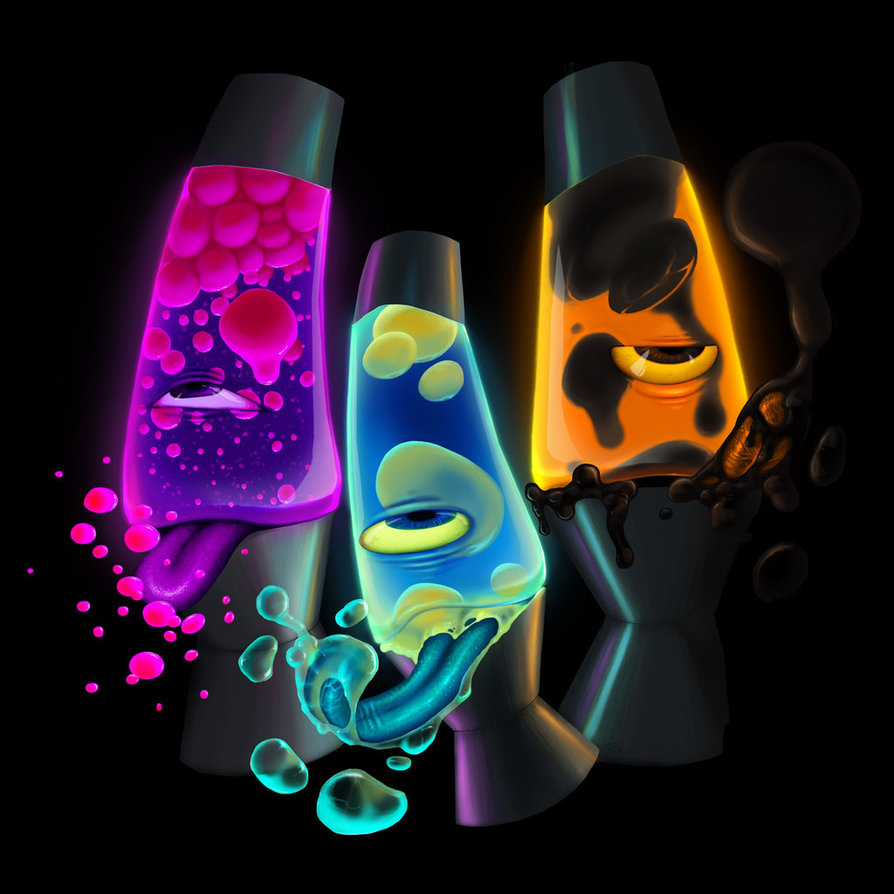 Description: A group of three different colored objects in a dark room with a black background and a black background with a black background.