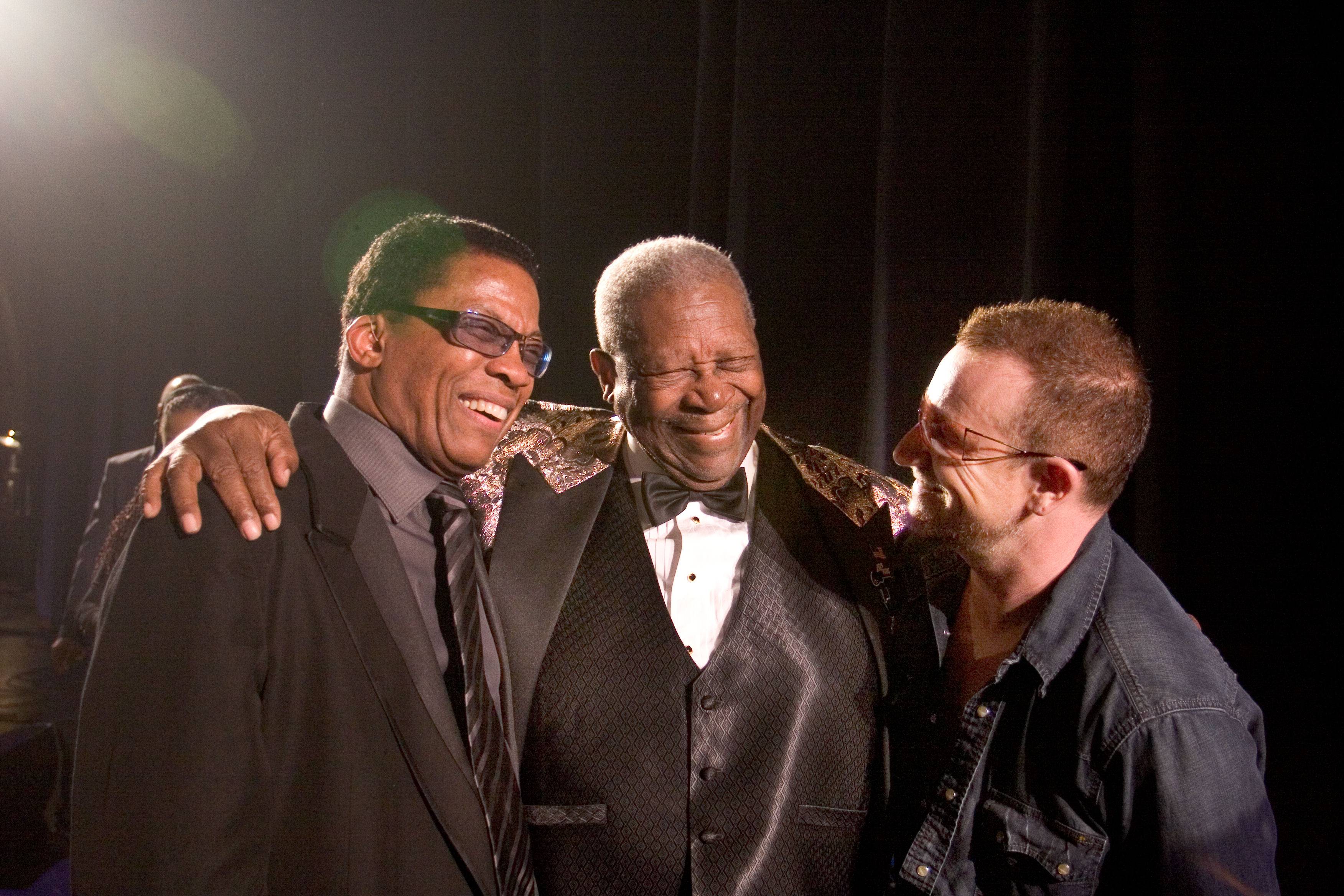 Description: Three men in suits and ties are smiling for the camera while one man is wearing glasses and the other is wearing a black shirt.