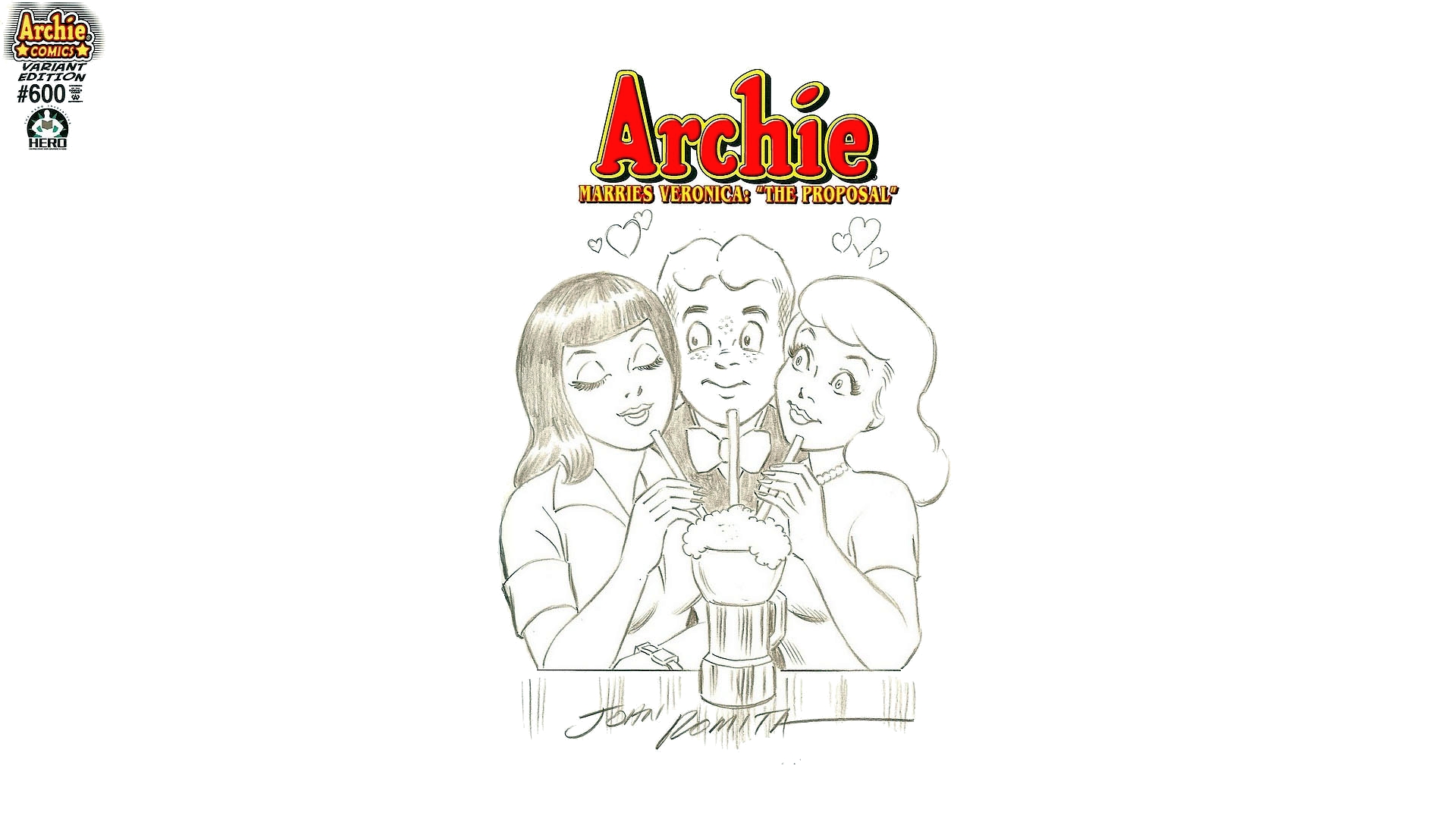 Description: A drawing of three people drinking a beer together.
